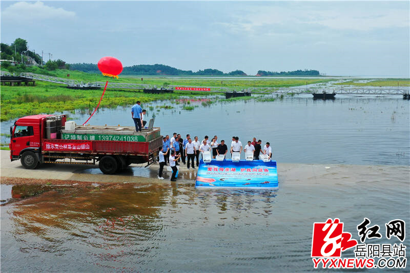 活动现场,一尾尾鲜活的鱼苗从放流槽中跃入清澈的河水,湖面顿时溅起阵阵水花。阳光下,鱼苗如银梭般成群游向深水区,它们将化作生态修复的尖兵,在这片水域繁衍生息,为东洞庭湖注入蓬勃生机。