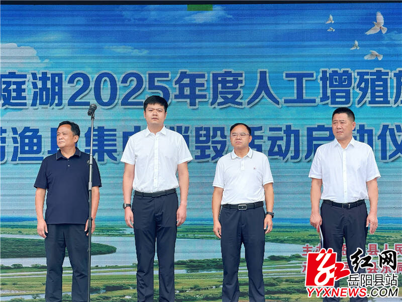 岳阳县融媒体中心6月12日讯(周昱君 周星亮)为加强水生生物资源养护,增殖渔业资源,6月11日,我县东洞庭湖2025年度人工增殖放流暨非法捕捞渔具集中销毁活动在飘尾码头举行。县委常委、副县长贺立,县人大常委会副主任任三星,县政协副主席张忠新出席,相关部门负责人参加活动。