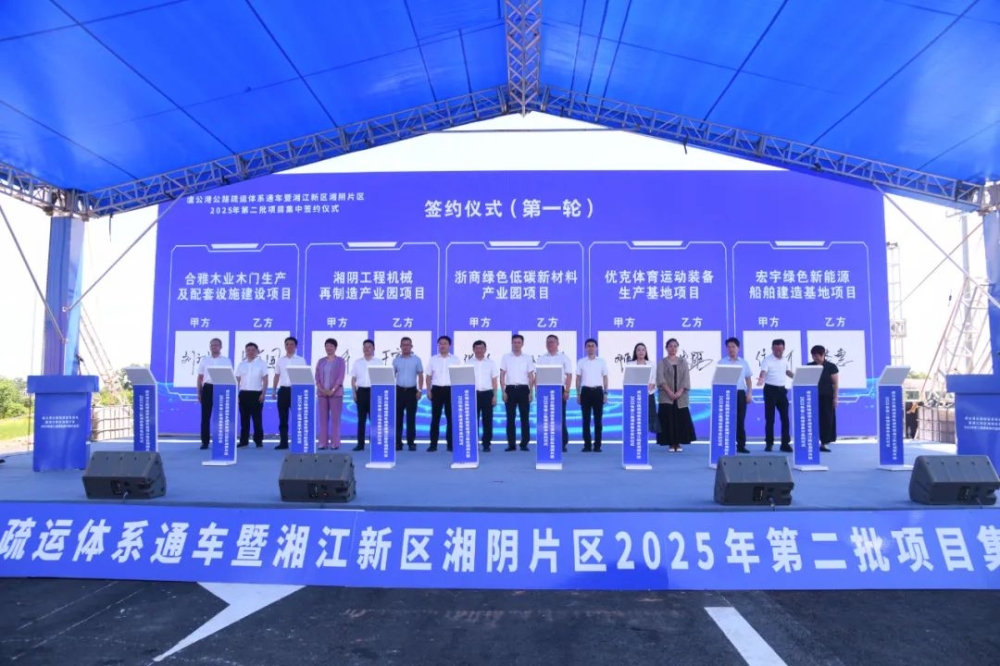 与此同时,湘江新区湘阴片区2025年第二批15个重点项目集中签约活动同步举行,总投资达106.5亿元。湘江新区(长沙高新区)党工委委员、管委会副主任王玮,湘阴县领导刘世奇、张永久、黄平、邓淼、杨革新等共同见证这一重要时刻。