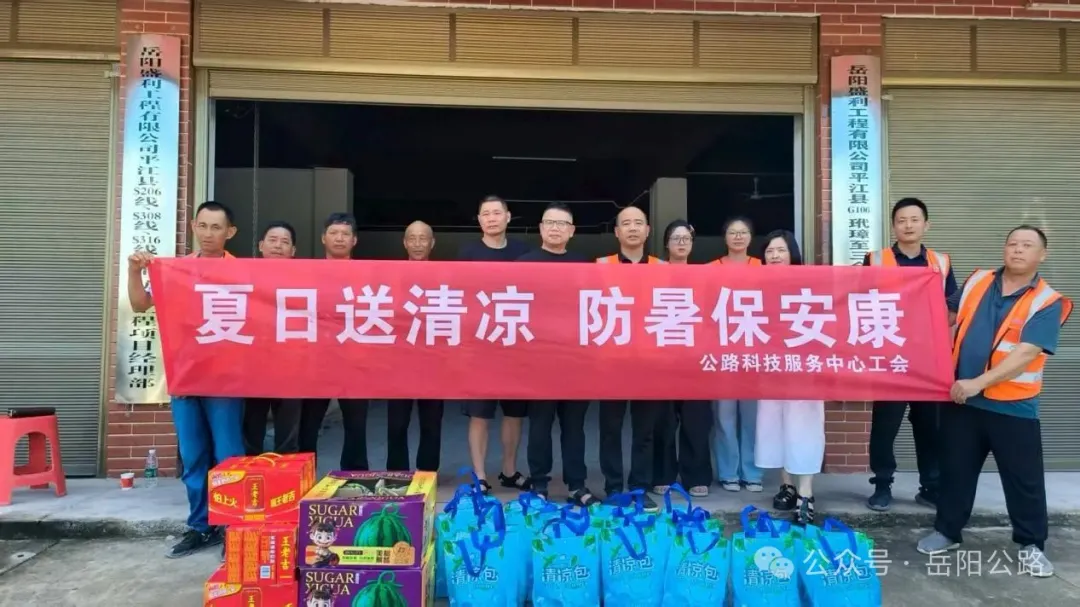 夏日高温持续,热浪席卷巴陵大地。为切实做好夏季防暑降温工作,保障一线职工身心健康与施工安全,近日,岳阳市公路科技服务中心党委副书记万昕带队,联合工会、综合部、人事部组成慰问组,先后深入试验检测基地、G107 线岳阳段大修工程现场及 G106 线平江工程段项目部等生产一线,开展 2025年“夏日送清凉 防暑保安康”专项慰问活动。