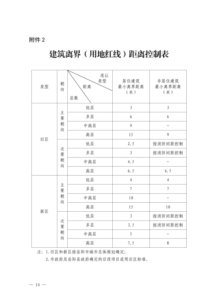 各类建筑的离界距离不得小于规定的最小距离(见附件2)。