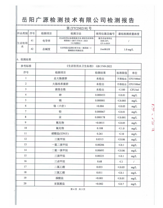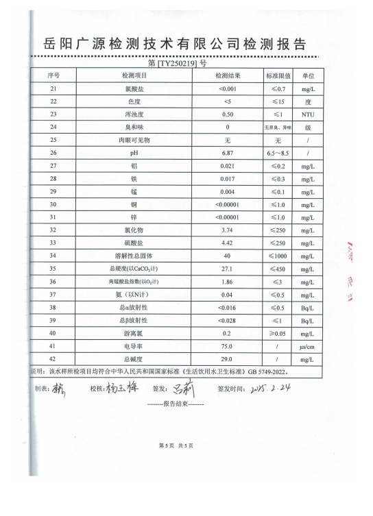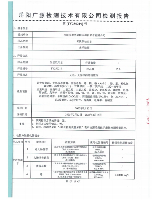 2025年2月岳阳市水务集团管网水水质检测月报表