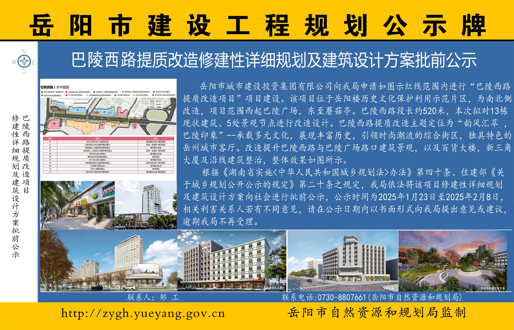 巴陵西路提质改造修建性详细规划及建筑设计方案批前公示