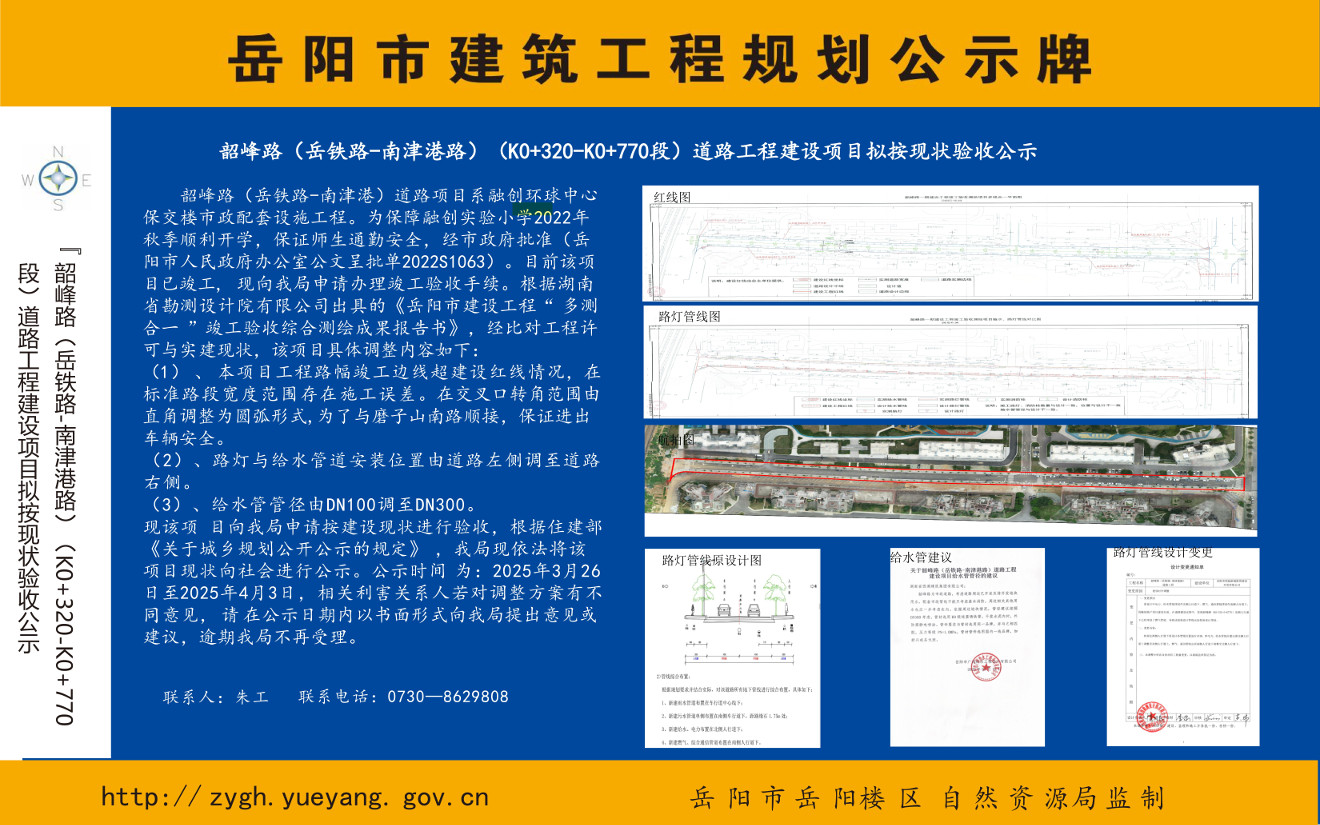 韶峰路(岳铁路-南津港路)(K0+320-K0+770段)道路工程建设项目拟按现状验收公示