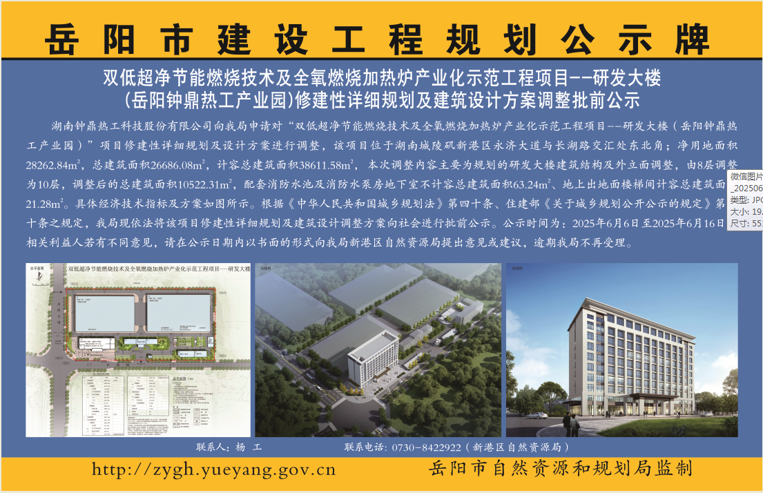双低超净节能燃烧技术及全氧燃烧加热炉产业化示范工程项目研发大楼(岳阳钟鼎热工产业园)修建性详细规划及建筑设计方案调整批前公示