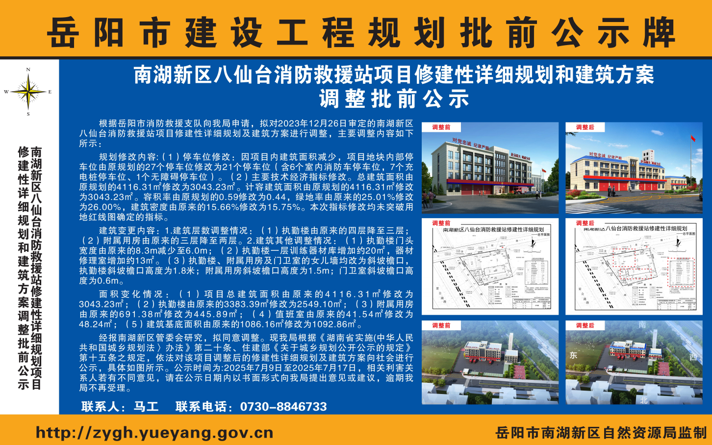 南湖新区八仙台消防救援站项目修建性详细规划和建筑方案调整批前公示