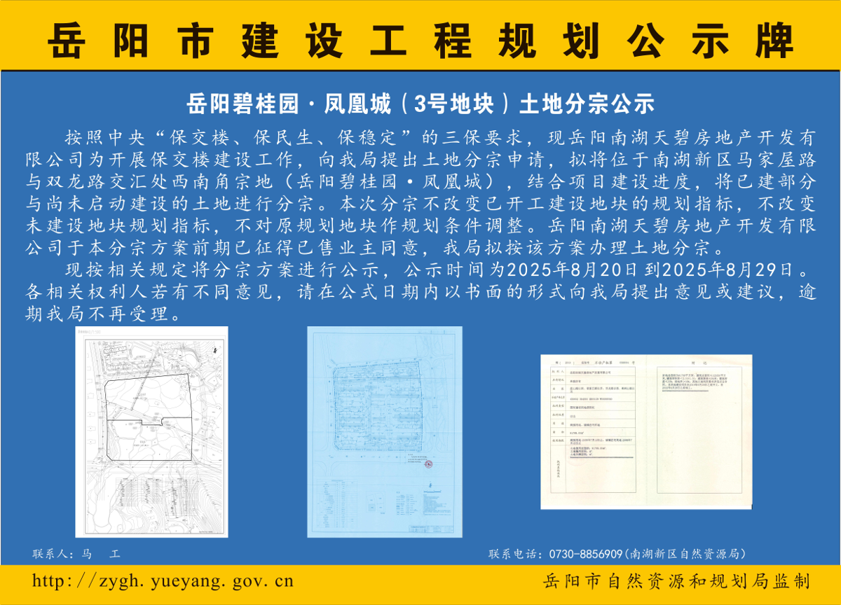 岳阳碧桂园.凤凰城(3号地块)土地分宗公示