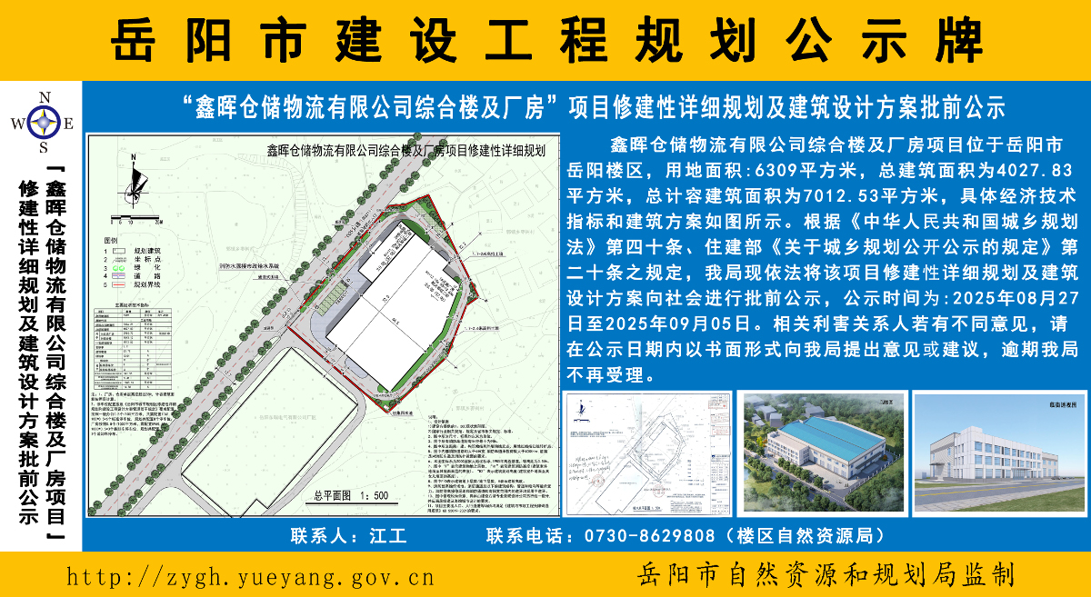 鑫晖仓储物流有限公司综合楼及厂房项目修建性详细规划及建筑设计方案批前公示