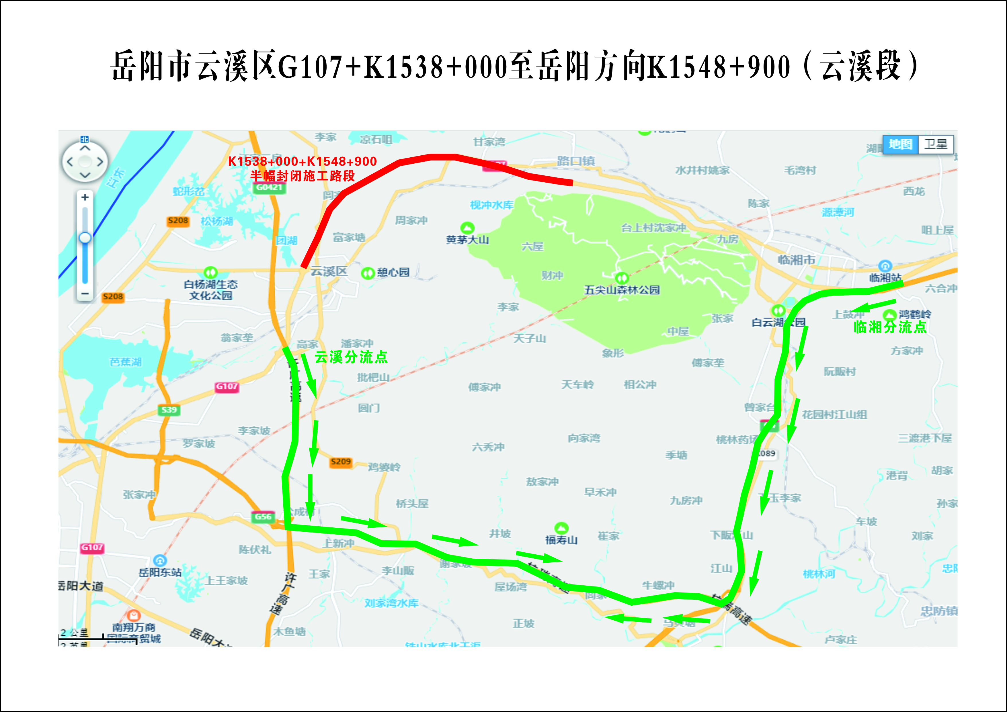 交通管制期间,管制路段道路西边半幅车道采取全封闭状态施工,行经小型汽车驾驶人可利用预留车道双向通行,大型货车及过境车辆请经京港澳高速绕行(由北往南经G4临湘互通,由南往北经G4岳阳互通)。