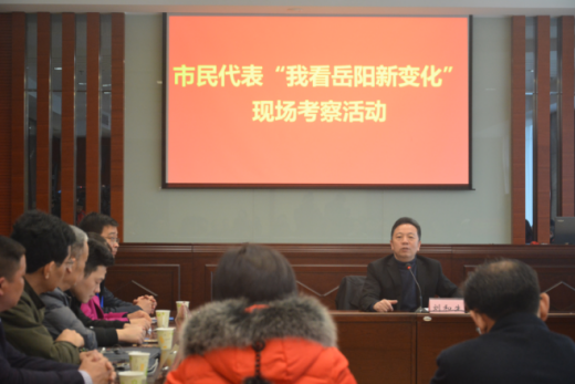 12月27日上午,参加市人民政府组织的“我看岳阳新变化”现场观摩活动的60位市民代表齐聚岳阳12345热线平台,从这里开启为期一天的考察行程。