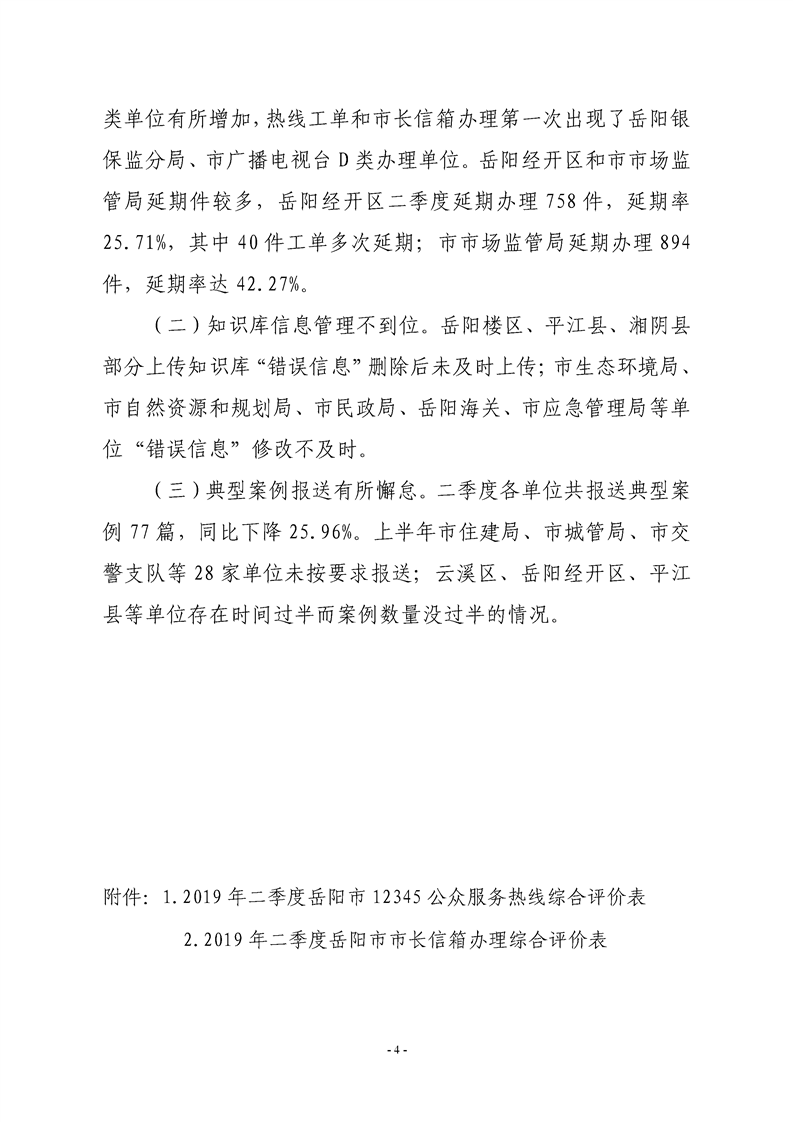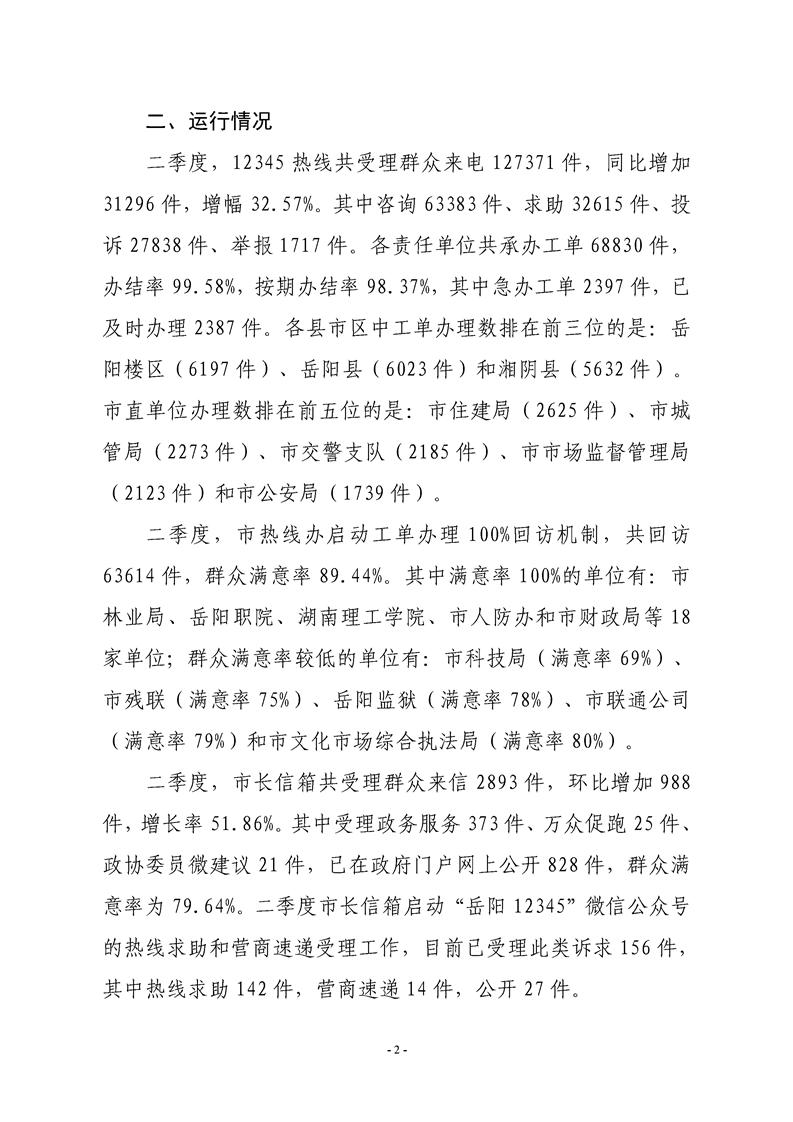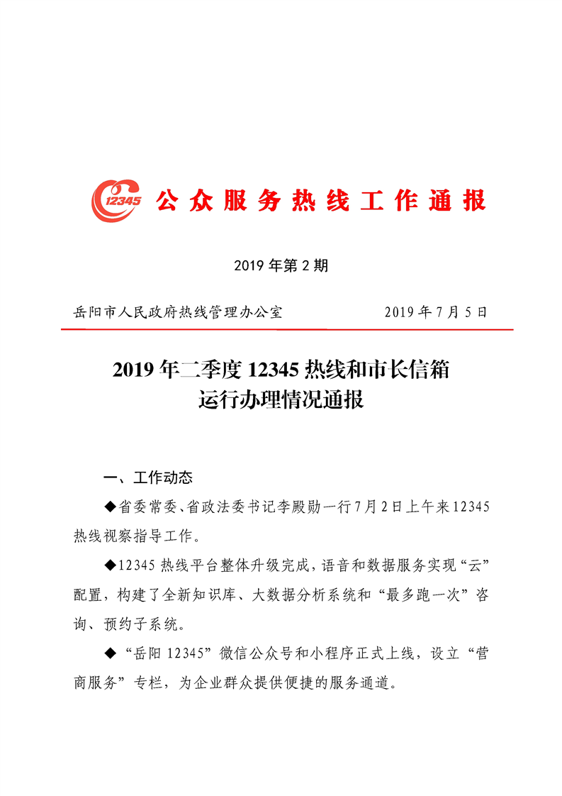 2019年二季度12345热线和市长信箱运行办理情况通报