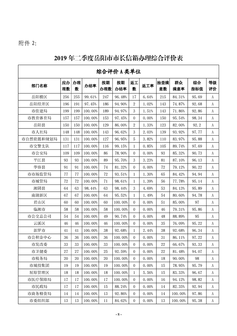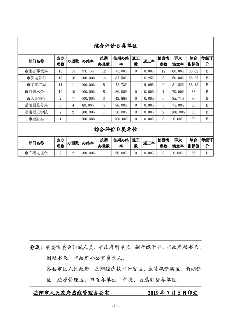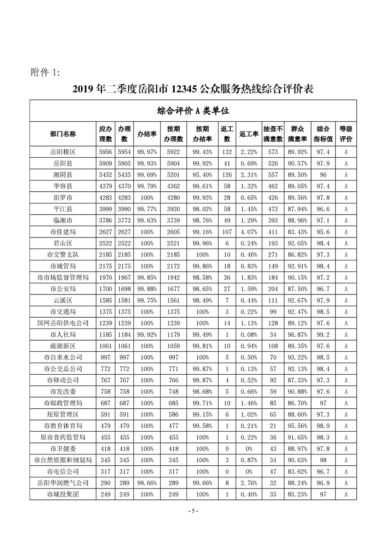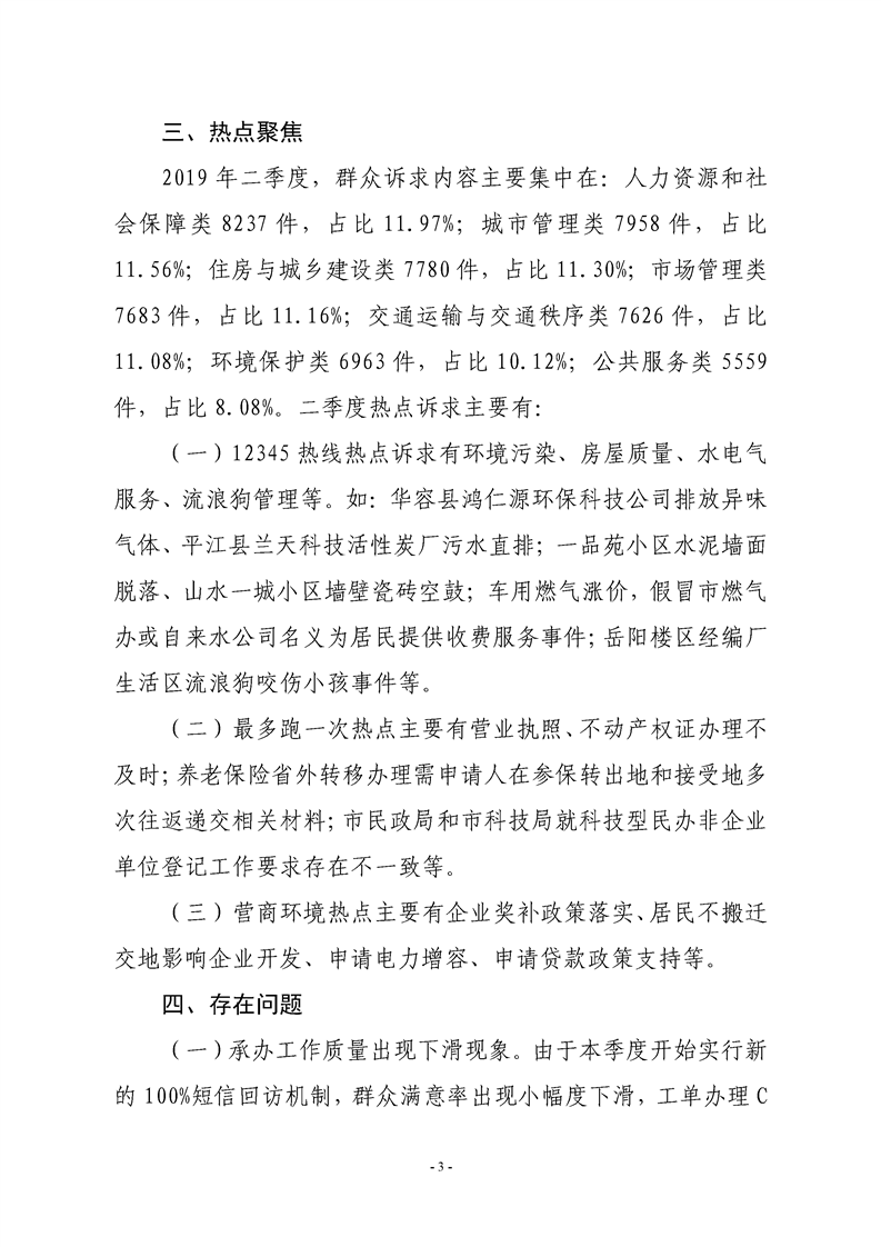 2019年二季度12345热线和市长信箱运行办理情况通报