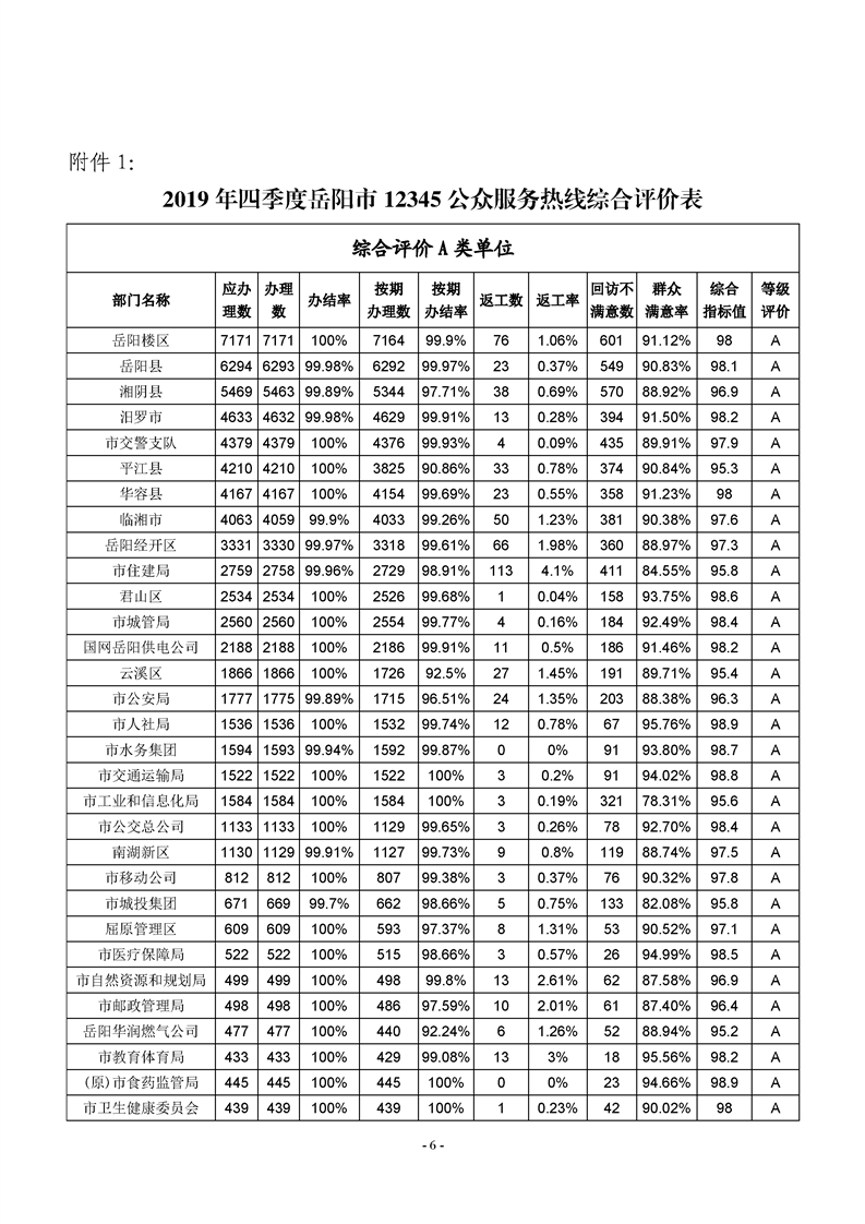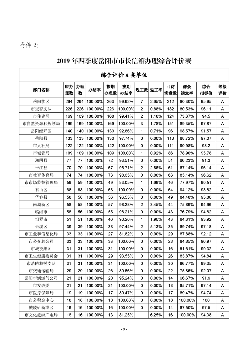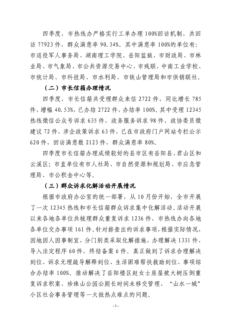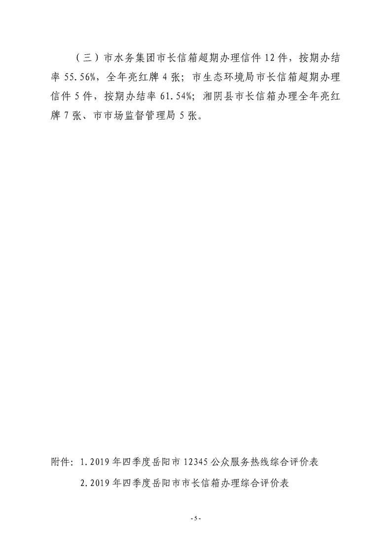 2019年四季度12345热线和市长信箱运行办理情况通报