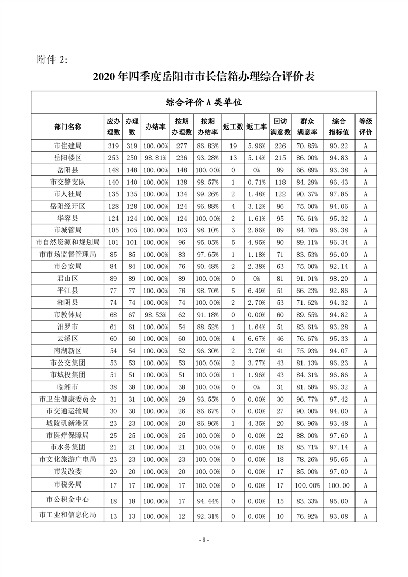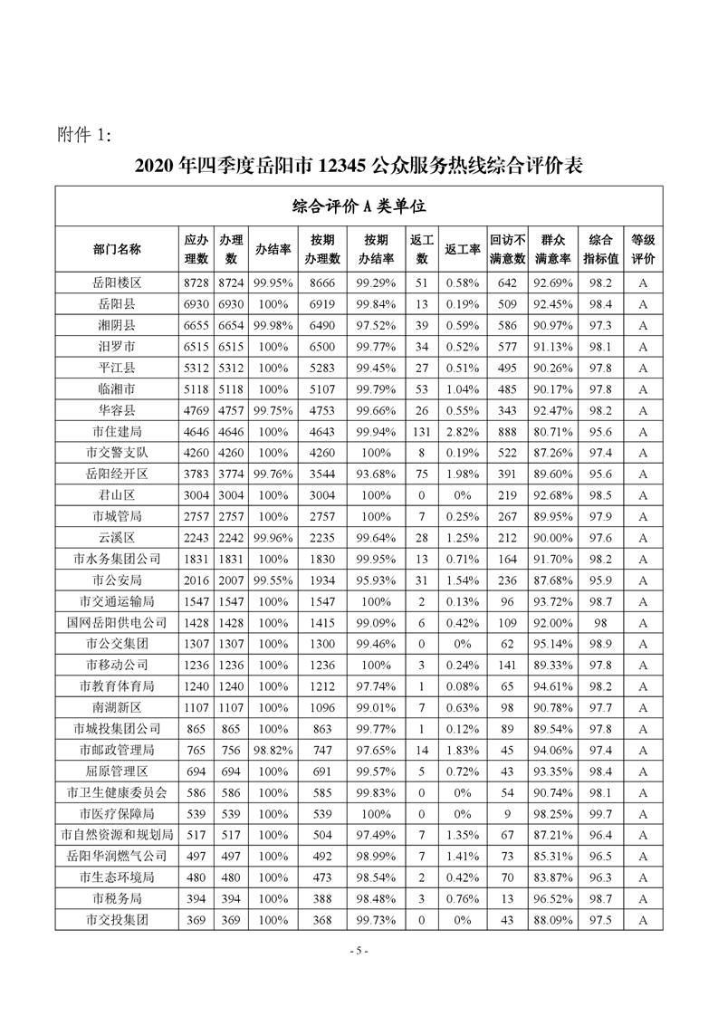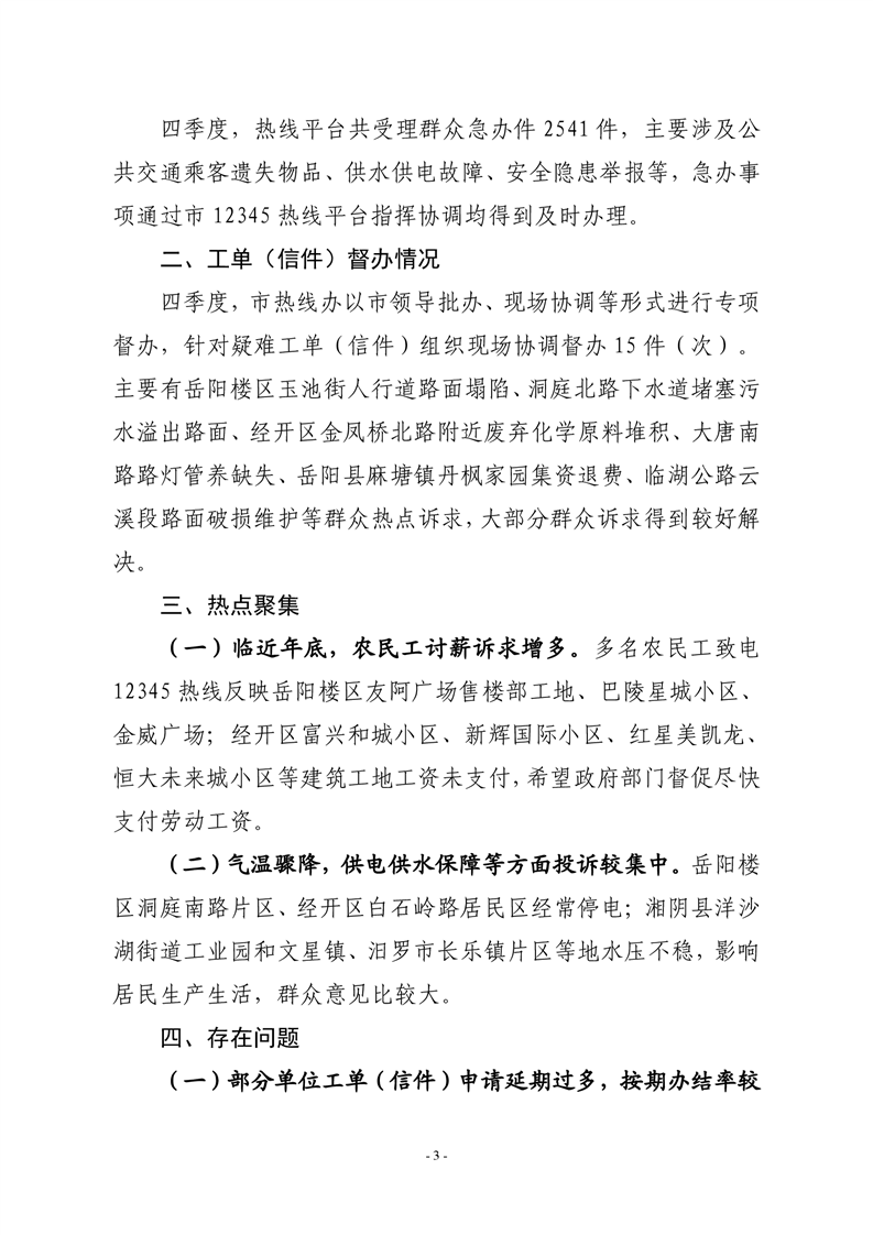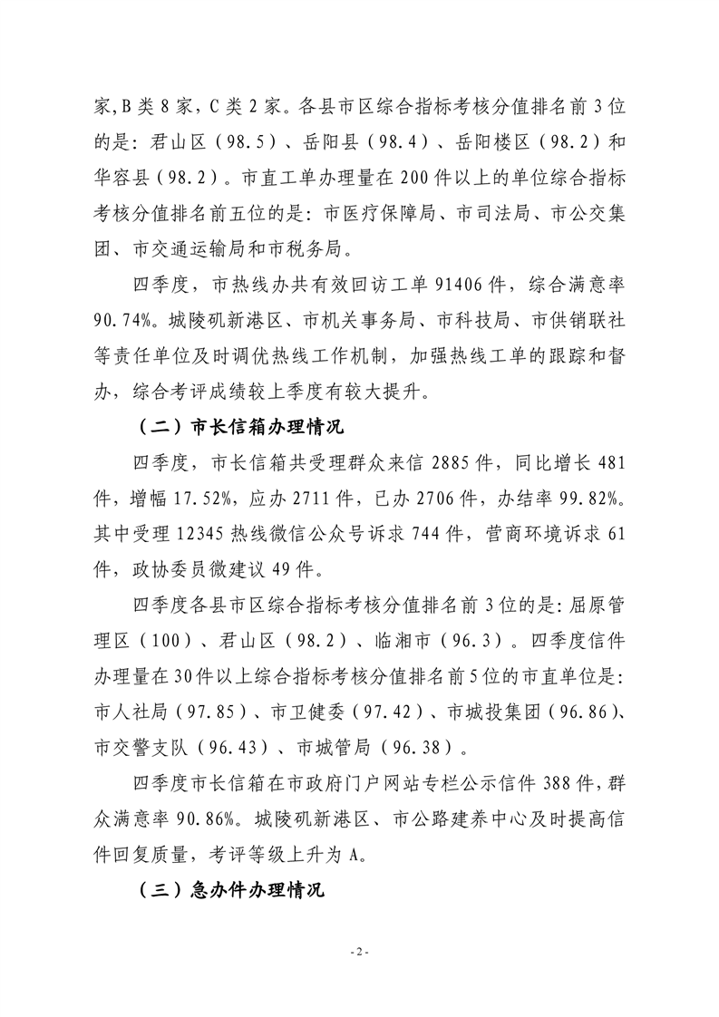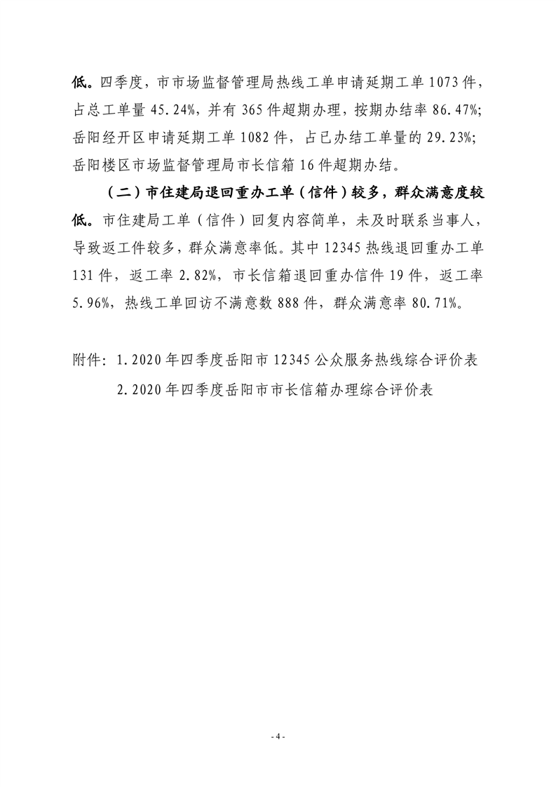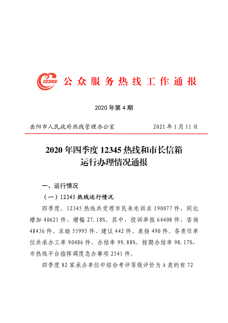 2020 年四季度 12345 热线和市长信箱运行办理情况通报