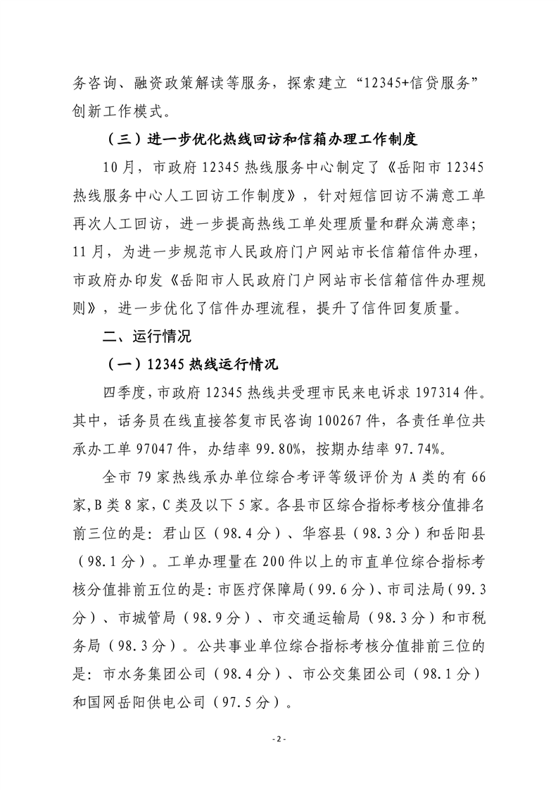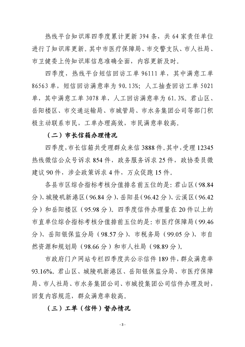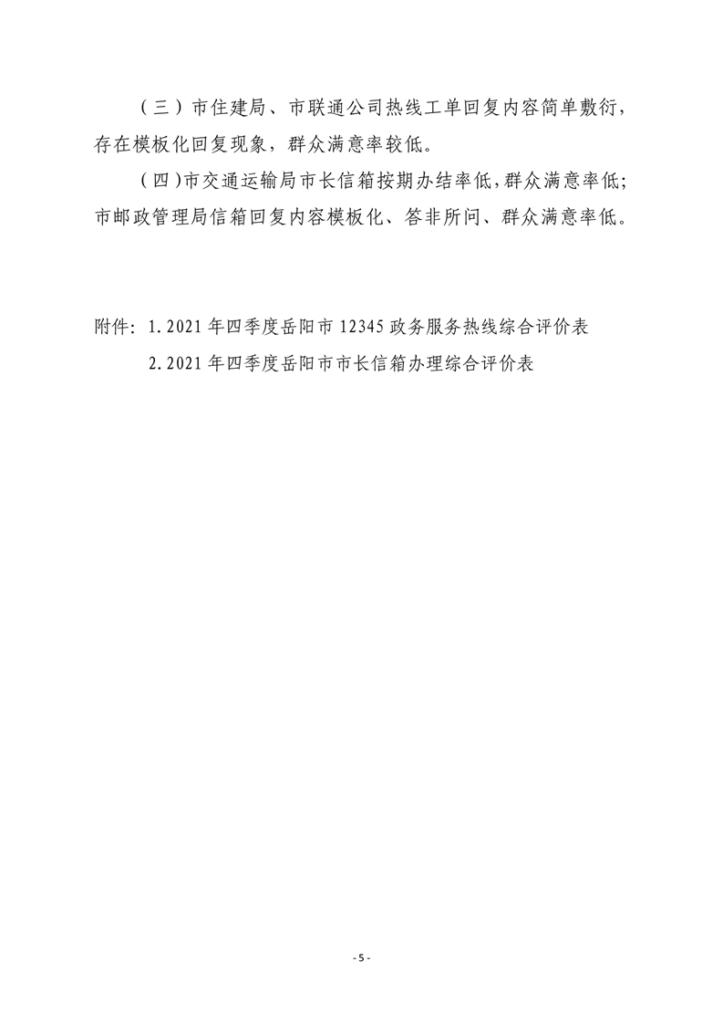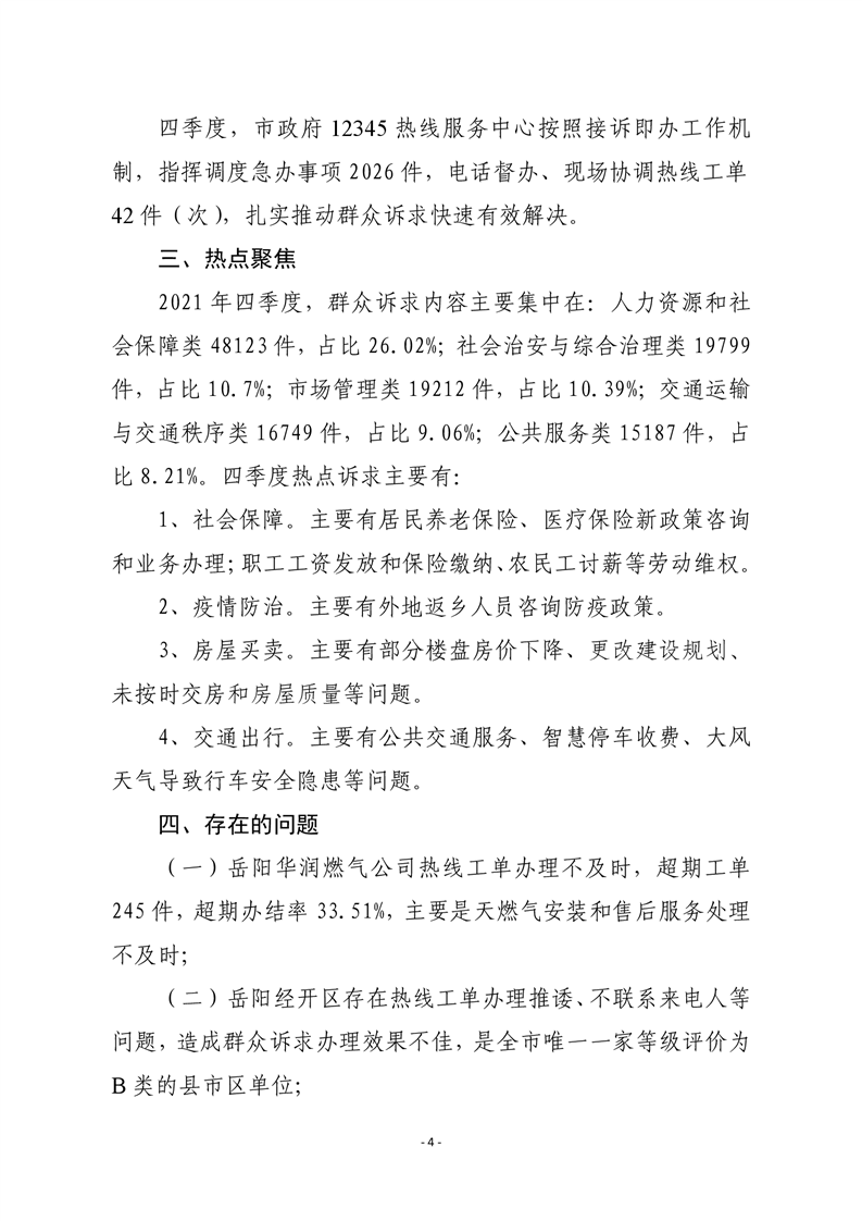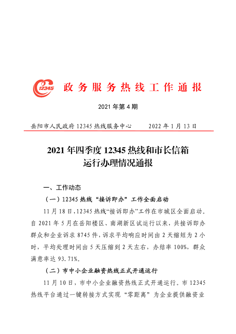2021 年四季度 12345 热线和市长信箱 运行办理情况通报