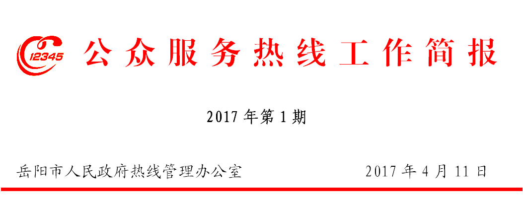 附:2017年一季度岳阳市12345公众服务热线综合评价情况