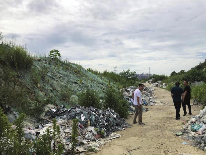 市城投集团对倾倒的渣土进行防尘覆盖后,又被人堆满了各类垃圾。