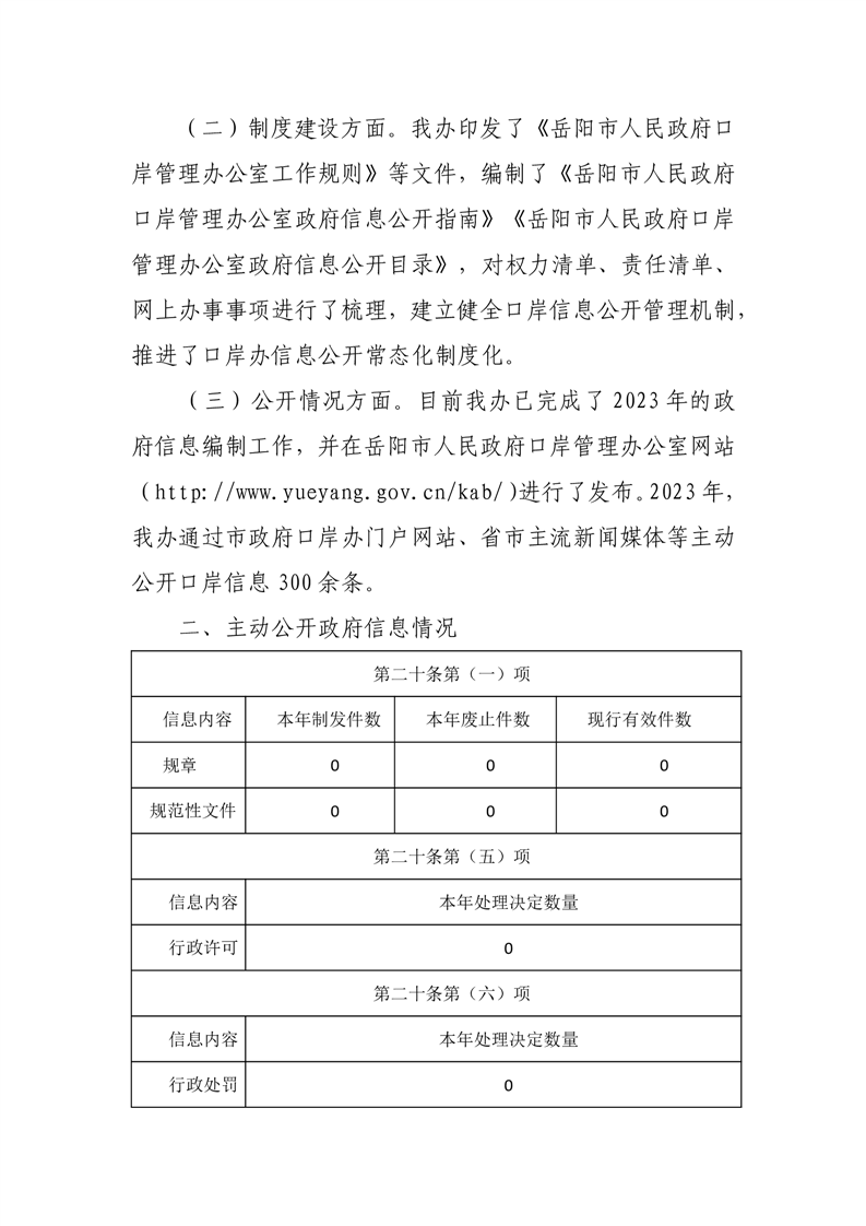 岳阳市人民政府口岸管理办公室2023年政府信息公开工作报告