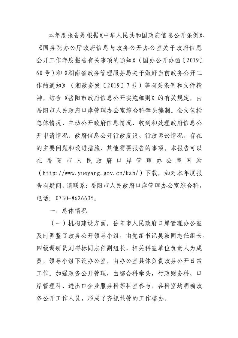 岳阳市人民政府口岸管理办公室2024年政府信息公开工作报告