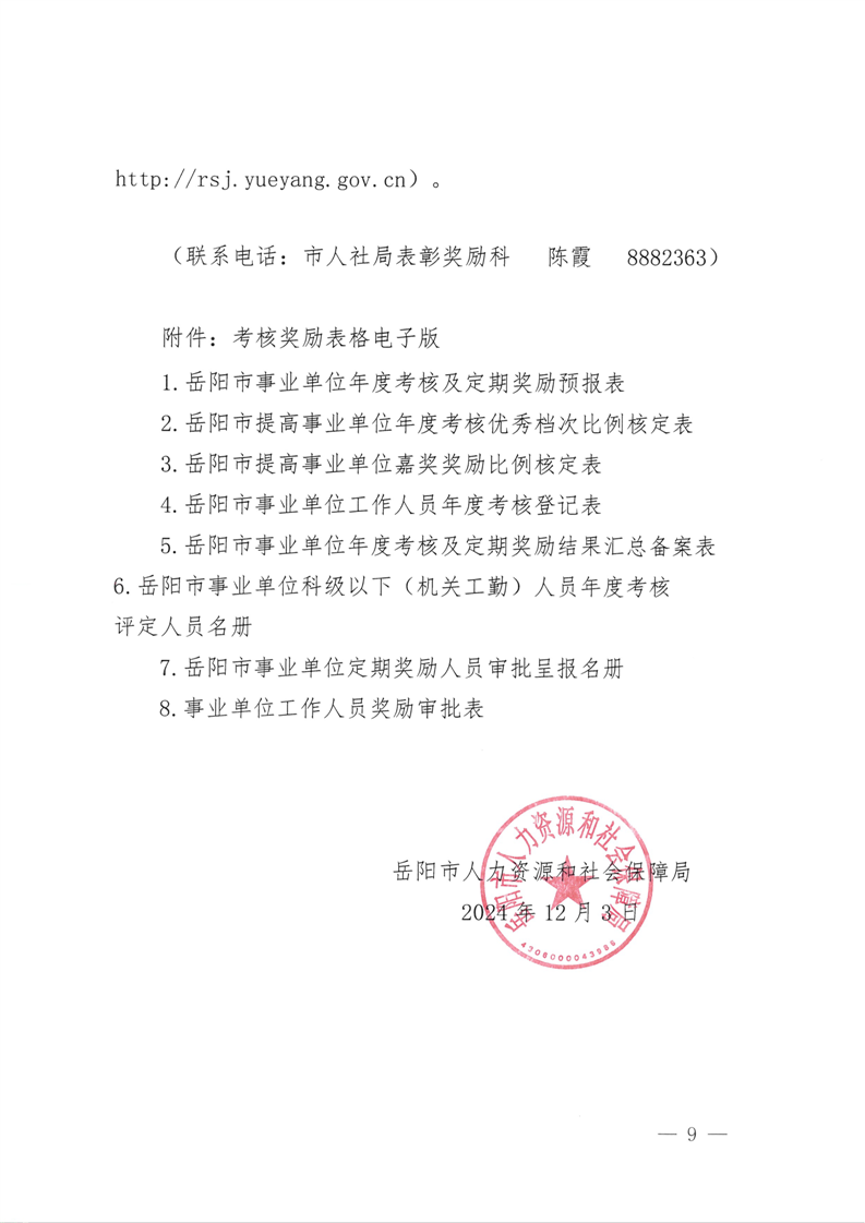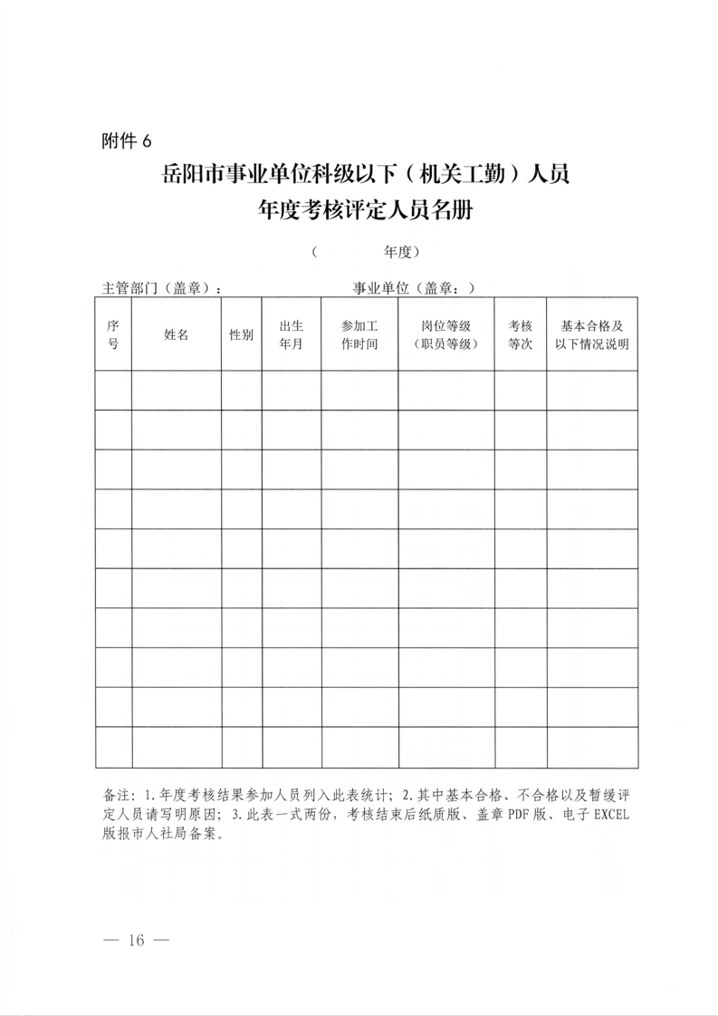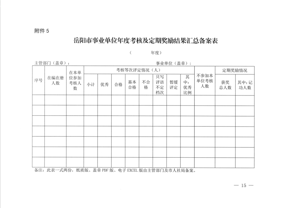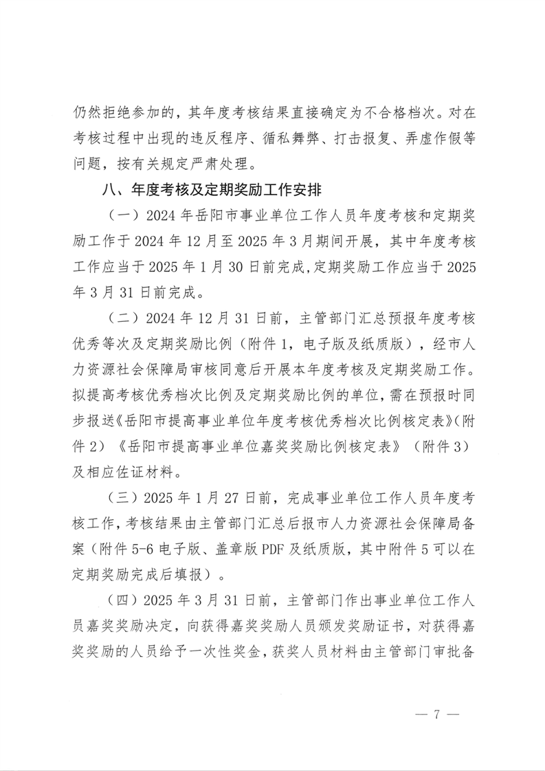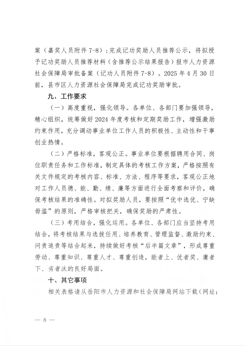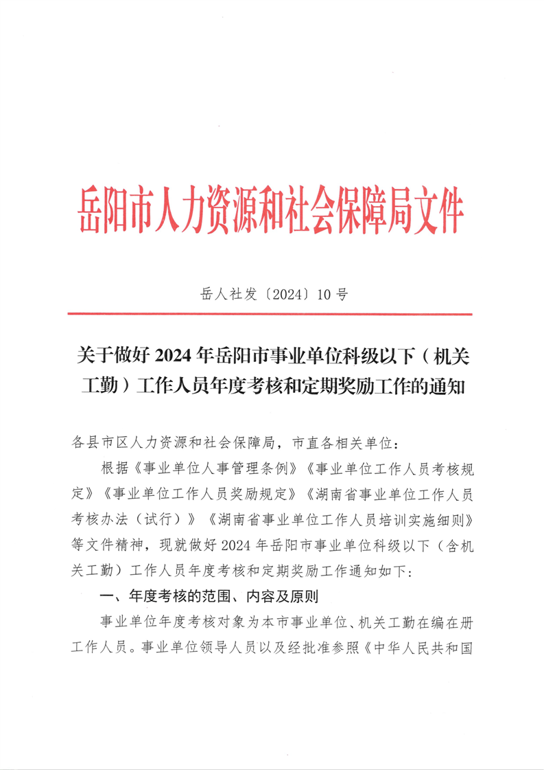 关于做好2024年岳阳市事业单位科级以下(机关工勤)工作人员年度考核和定期奖励工作的通知