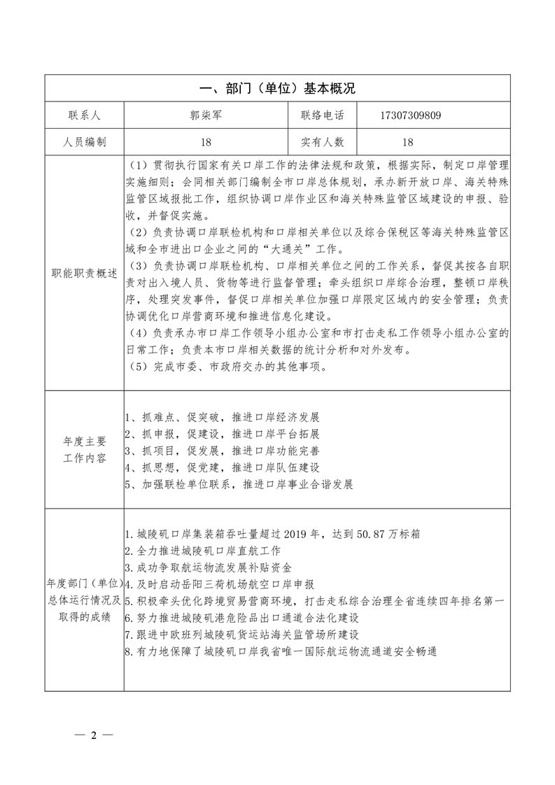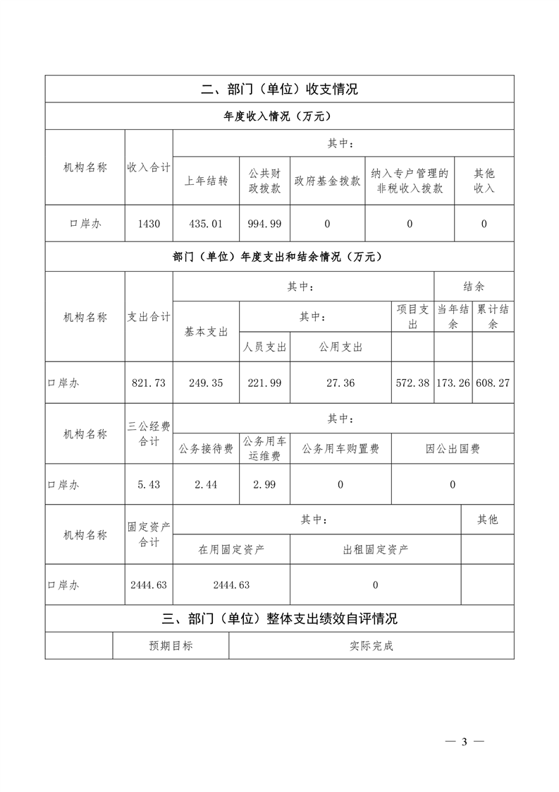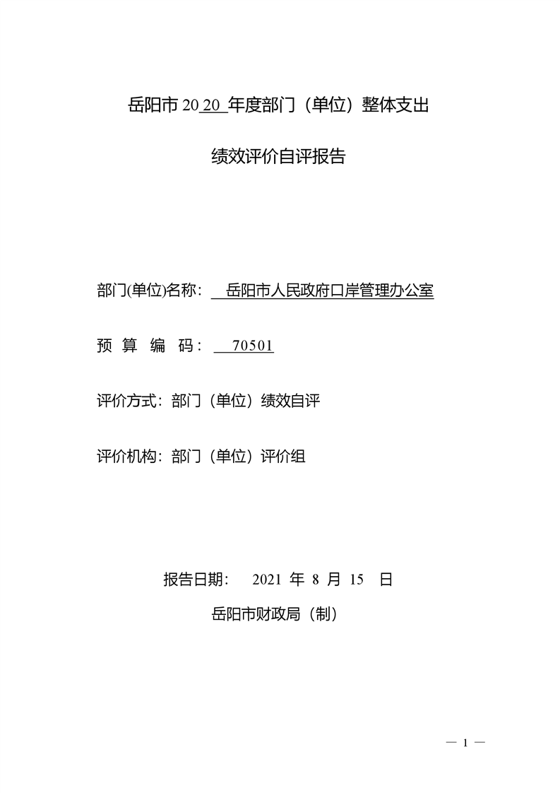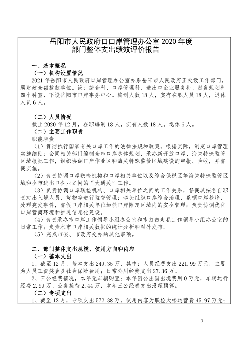 2020年口岸办绩效自评