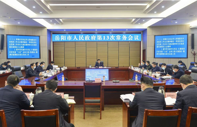 1月30日下午,市委副书记、市长李挚主持召开市政府第13次常务会议,传达学习中央和省市有关文件会议精神,听取市本级政府固定资产投资项目立项审查情况等汇报,审议相关规划等。会议传达学习了贯彻落实中央经济工作会议精神做好一季度经济社会发展工作的有关通知精神和全市高质量发展推进大会精神,传达《<湖南省打好发展“六仗”总体方案>的通知》精神,并部署落实相关具体工作。会议强调,各级各部门单位要认真学习贯彻相关文件会议精神,强化政策举措,切实把决策部署落实落细;要立足当前、着眼全年,抓紧分解落实任务,加快工作进度,确保一季度“开门红”。会议听取了国土空间总体规划的主体内容和编制过程汇报,高度肯定了我市国土空间总体规划的编制成果,并原则通过了《岳阳市国土空间总体规划(2021—2035年)》,要求要深入学习贯彻习近平总书记关于规划工作重要论述,在守好守牢三条控制线的基础上,加强国土空间规划与产业发展等专项规划有机衔接,有效对接未来发展各项重大工程项目和重大基础设施;要认真修改完善规划,适当留白,为未来发展留足空间;要做好统筹协调,确保高质量完成规划编制报批工作。