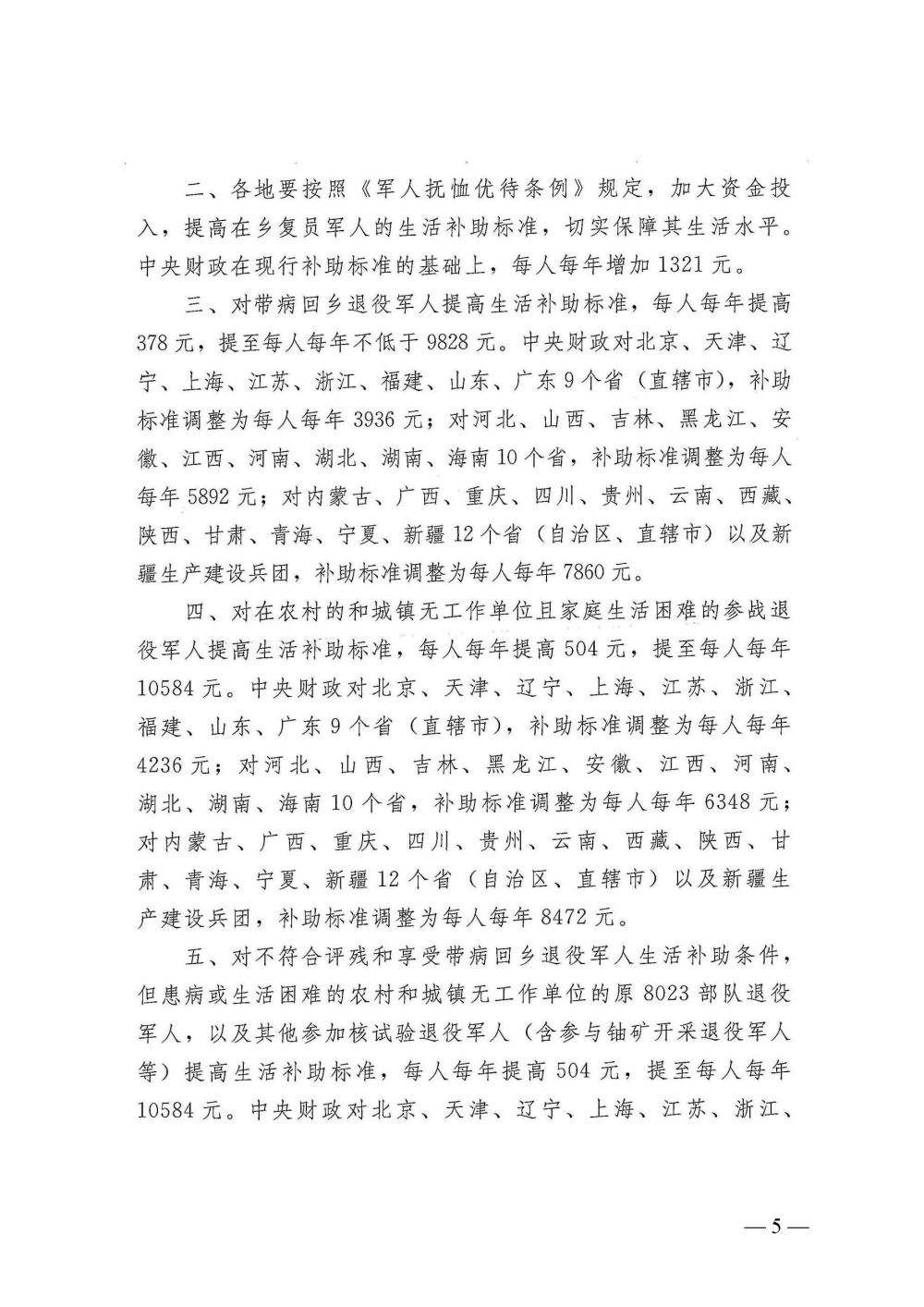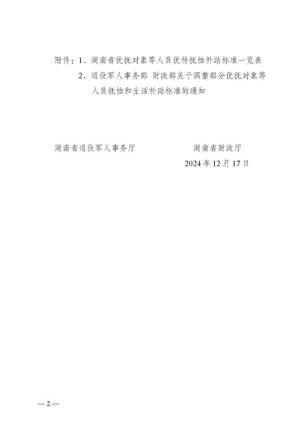 湖南省退役军人事务厅 湖南省财政厅关于调整部分优抚对象等人员抚恤和生活补助标准的通知