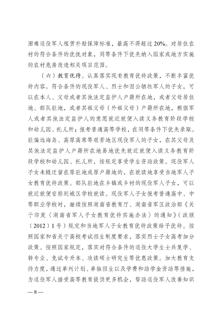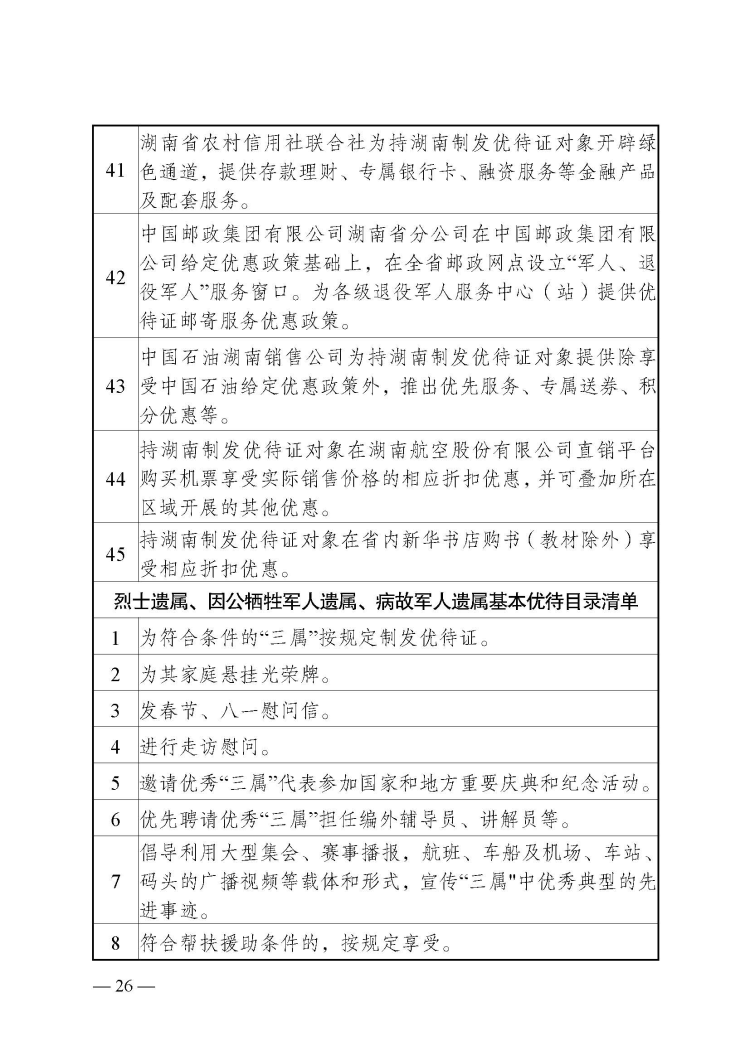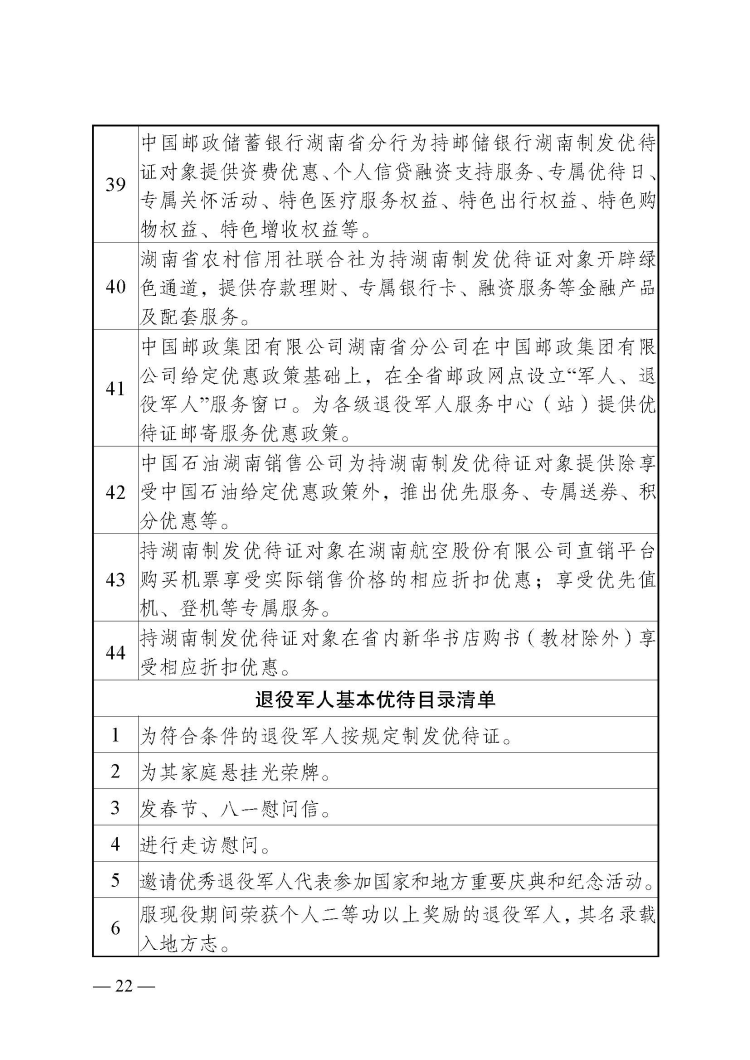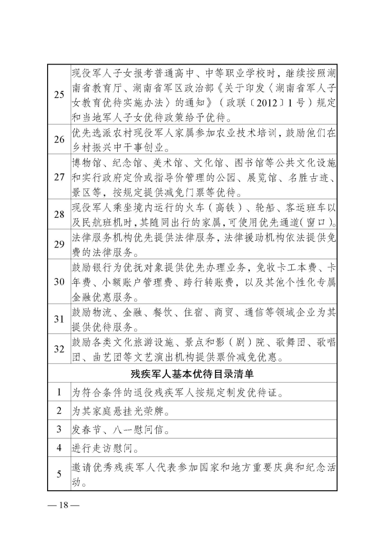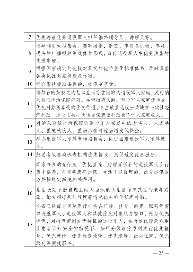 湖南省退役军人事务厅等24部门关于印发《湖南省加强军人军属、退役军人和其他优抚对象优待工作的实施意见》的通知