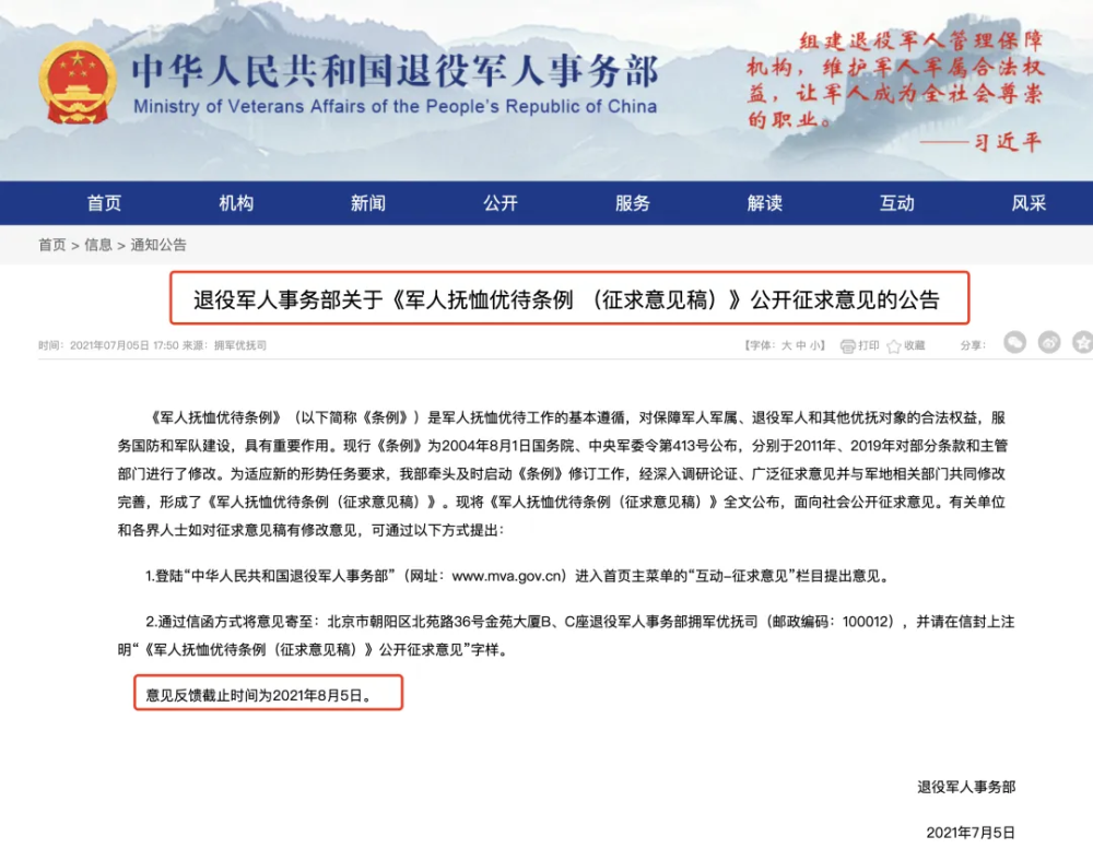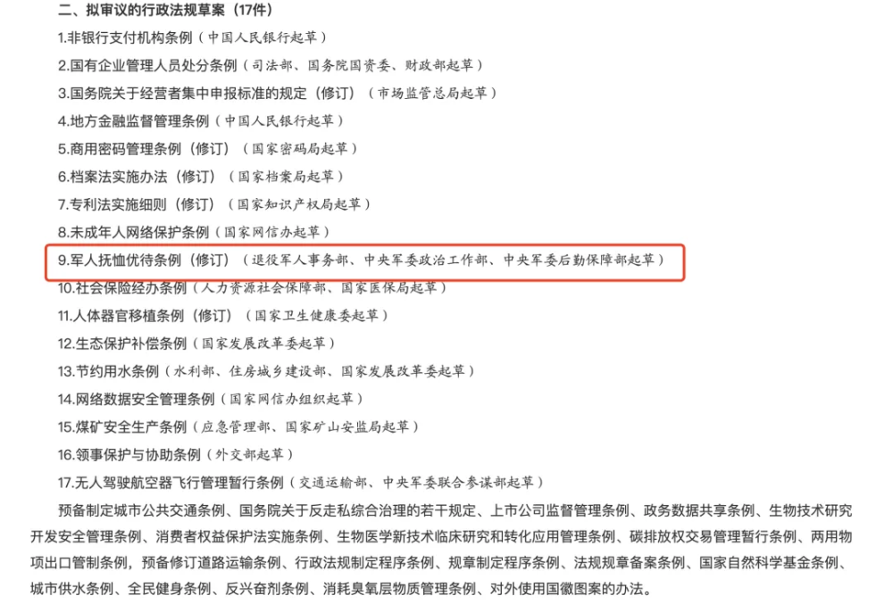 《军人抚恤优待条例(修订)》,今年拟审议!