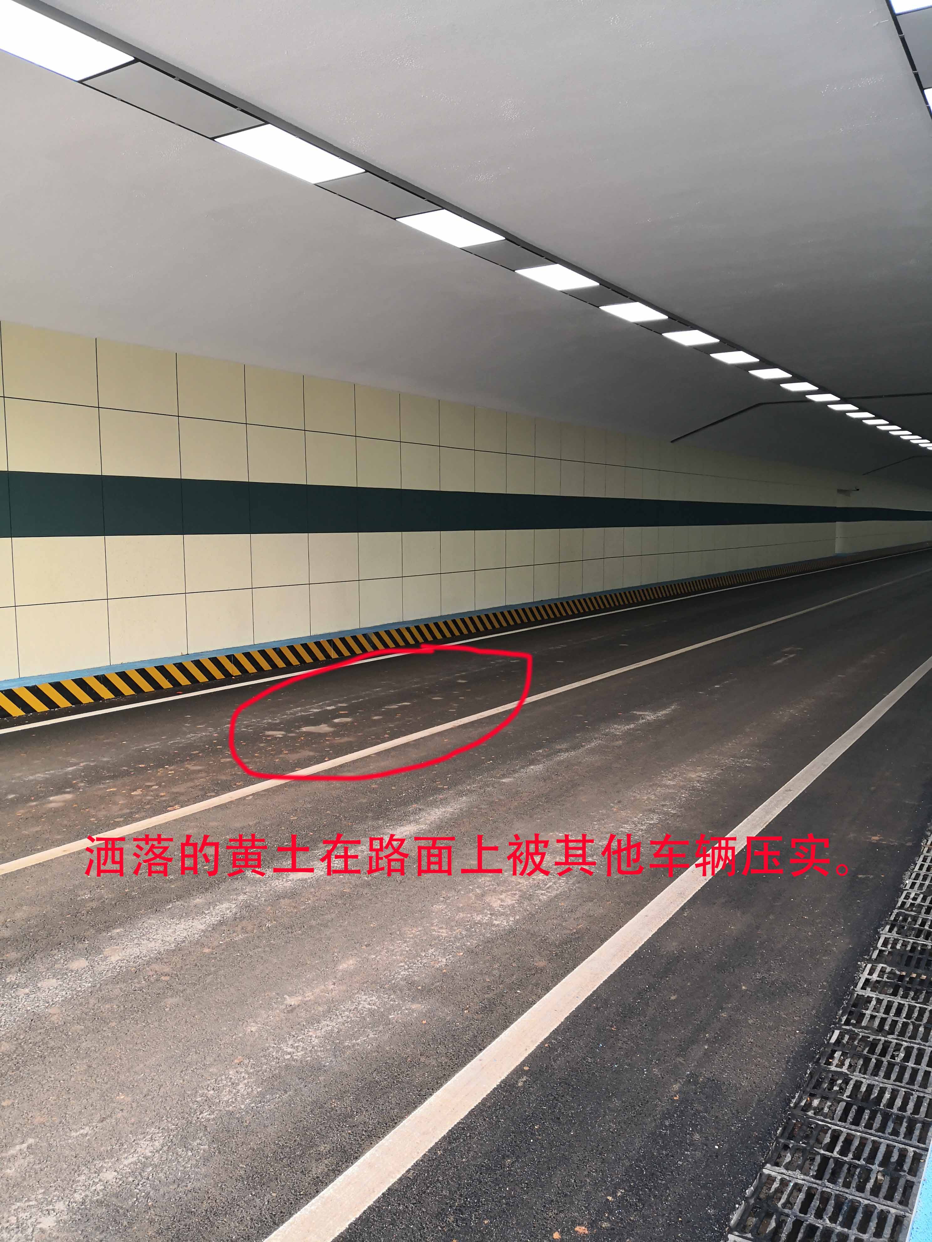 黄河大道滨湖隧道11月份整修一新后,一改过去隧道漏水及灰尘弥漫的现象,为湖滨镇及洞庭湖国际公馆及周边住户行经隧道提供了非常好的通行环境。但最近雷公湖路晚间疑似有渣土车未经防护就上路行使,一路撒黄土至滨湖隧道(详见附件图片)。恳请相关执法部门加强执法力度,管理好行经该路段的渣土车,另请渣土公司或环卫部门每周清洗因渣土车掉落黄土导致的隧道积土。