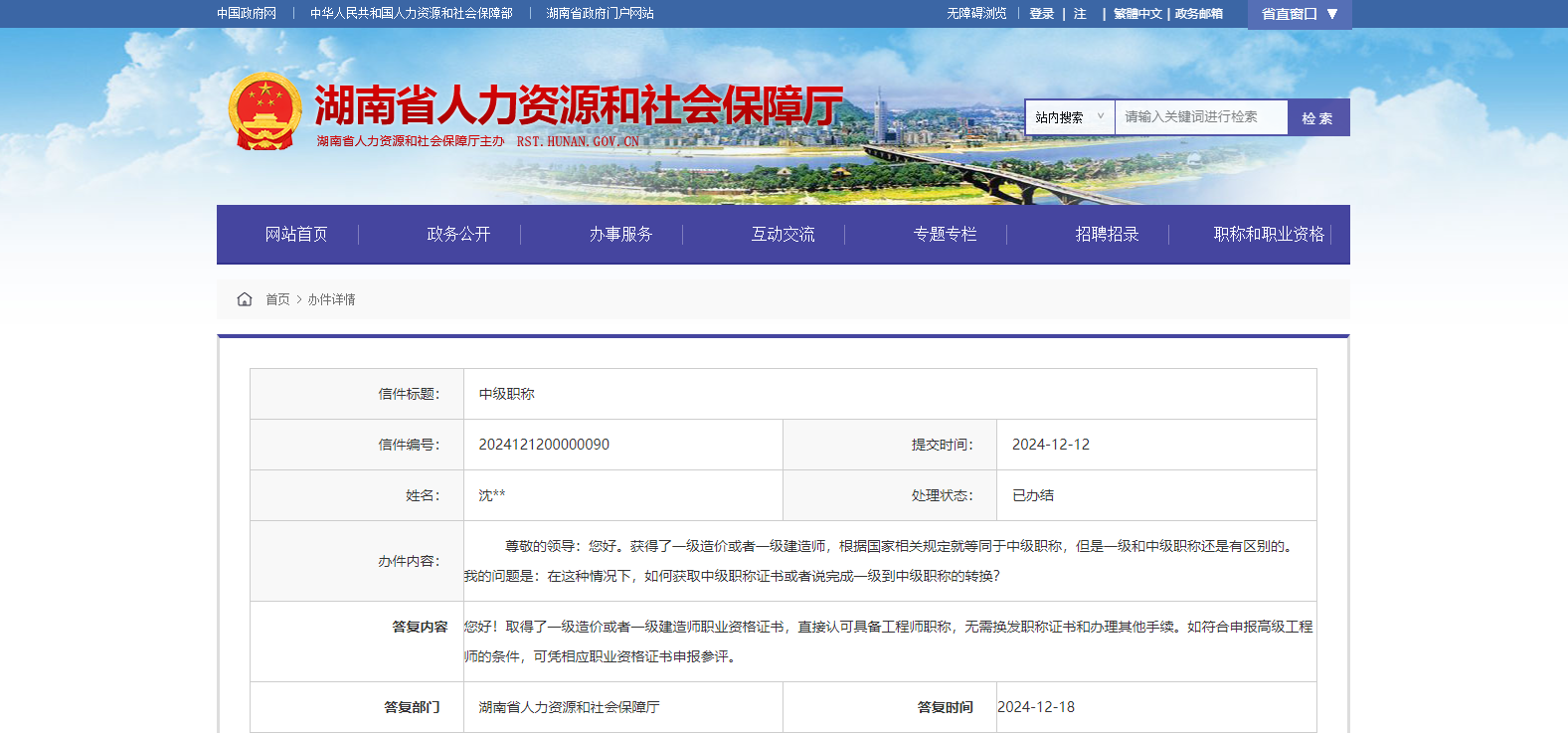 | 内容: | 你好,因为有听说湖南一级建造师可不用参加职称考试直接评中级职称。所以特意来咨询。如果可以的话应该怎么办? 附件1:565656565.png |