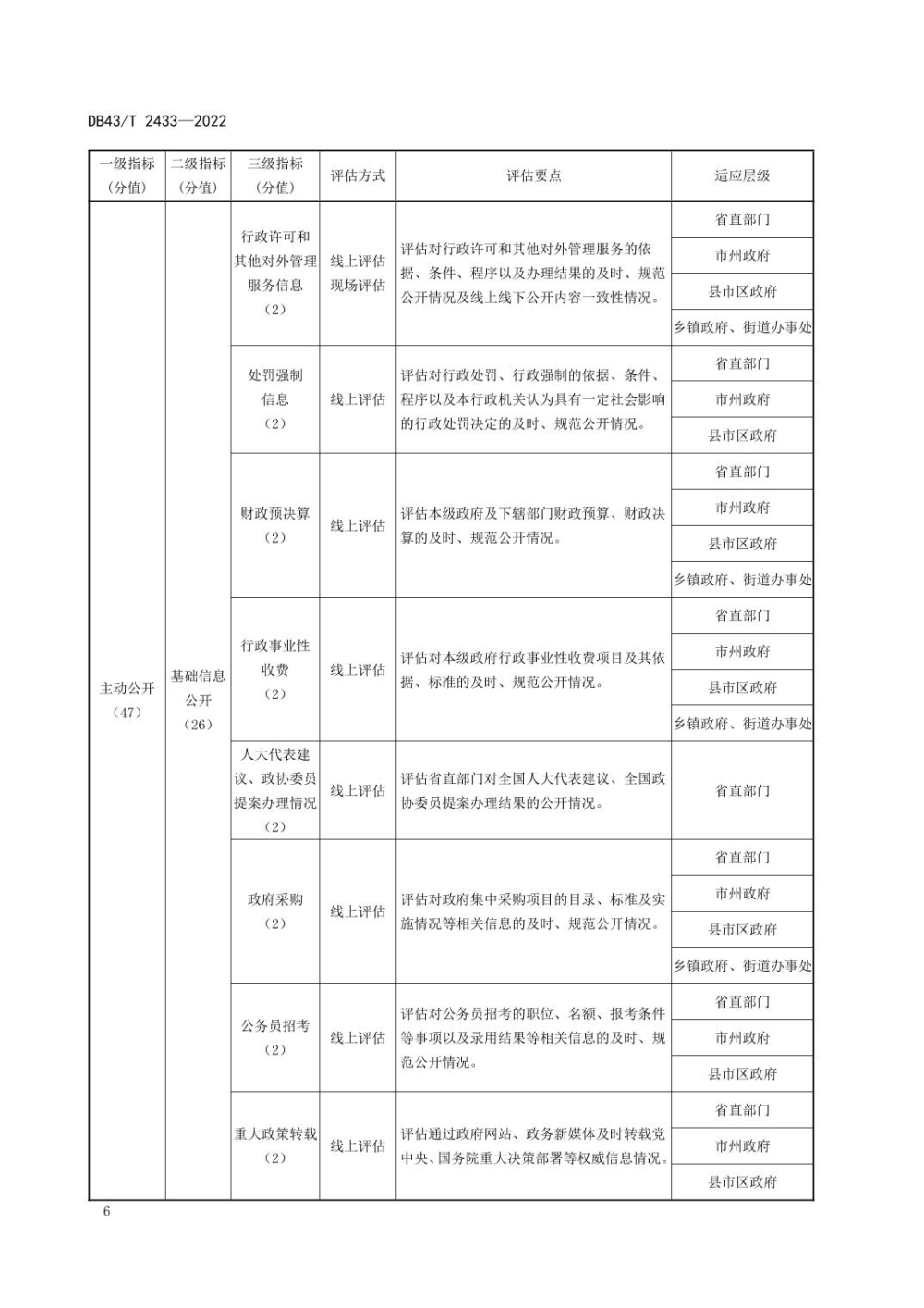 湖南省地方标准:政务公开评估规范