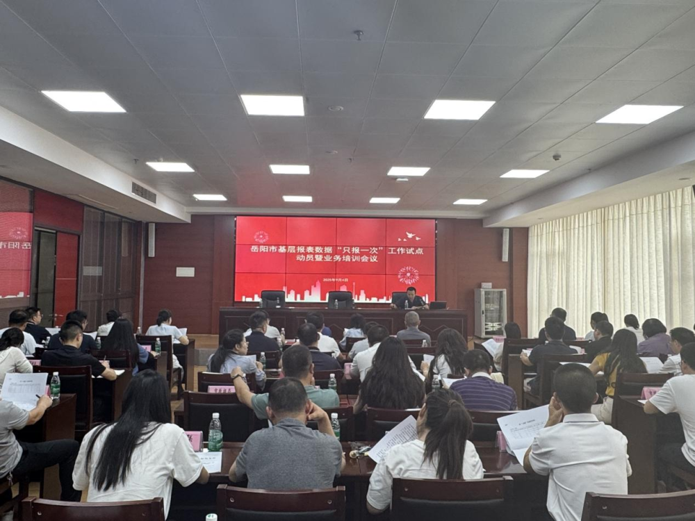 9月4日下午,岳阳市基层报表数据“只报一次”工作试点动员暨业务培训会议在市人民政府12345热线服务中心三楼召开,我市基层报表数据“只报一次”试点工作全面启动。市数据局党组书记、局长宋为主持会议,市委副秘书长许勇球、市政府副秘书长胡巍出席会议并讲话。市直相关单位共60余人参会。