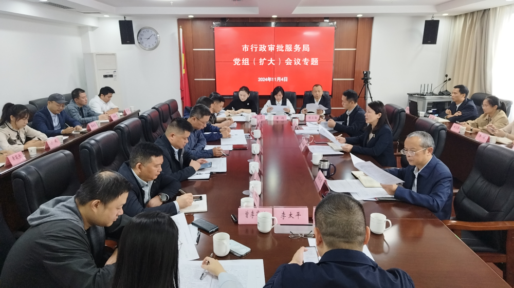 11月4日上午,市行政审批服务局党组书记、局长胡蝶主持召开党组(扩大)会议,传达学习市委八届八次全会精神,研究落实举措,部署后段工作。局党组在家的班子成员,局机关、政务服务中心、园区服务中心全体工作人员参会。