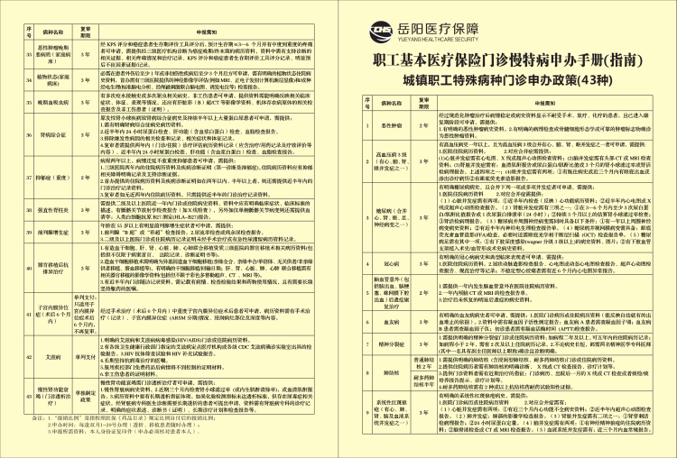 职工基本医疗保险门诊慢特病申办手册(指南)—— 城镇职工特殊病种门诊申办政策(43种)
