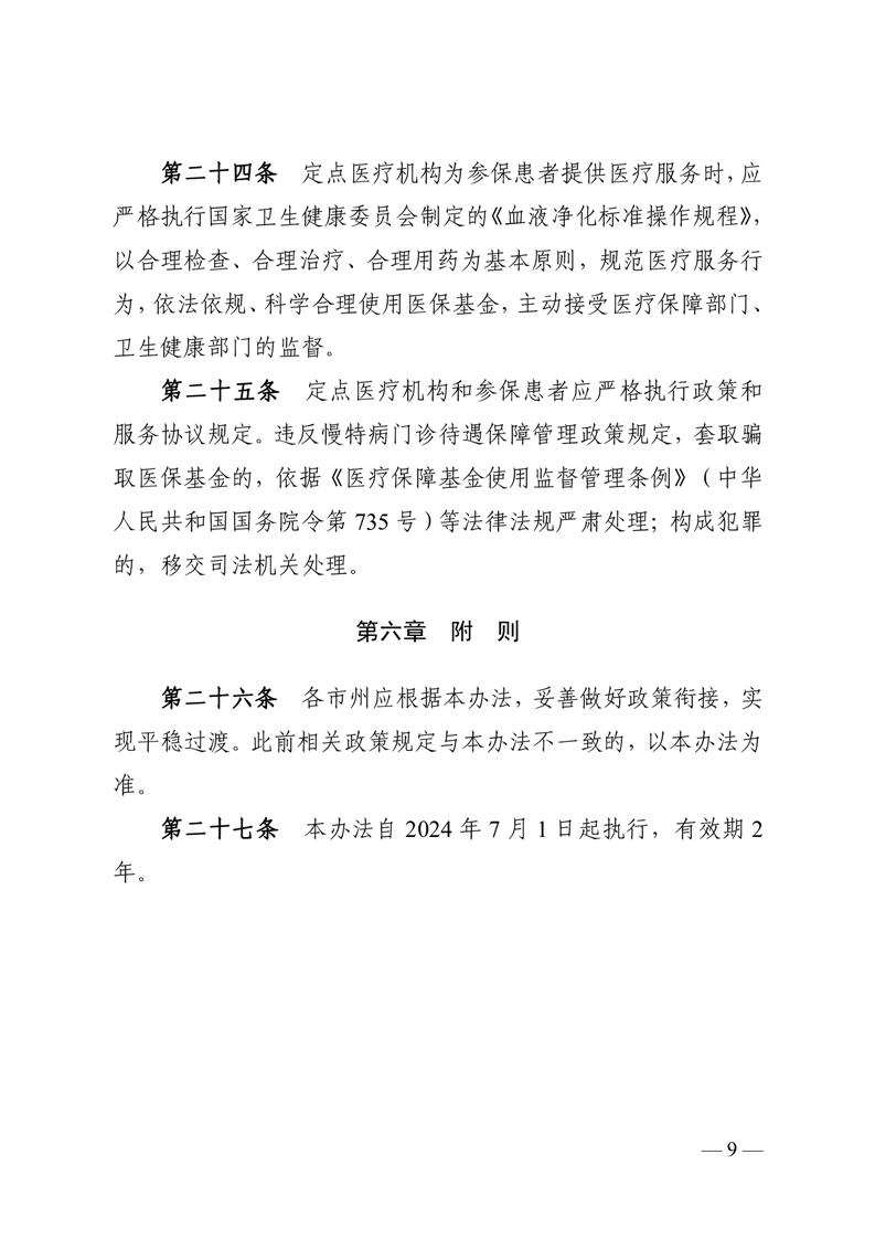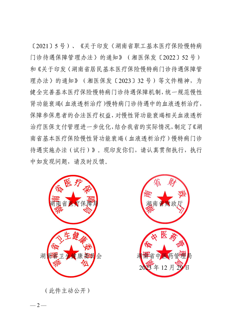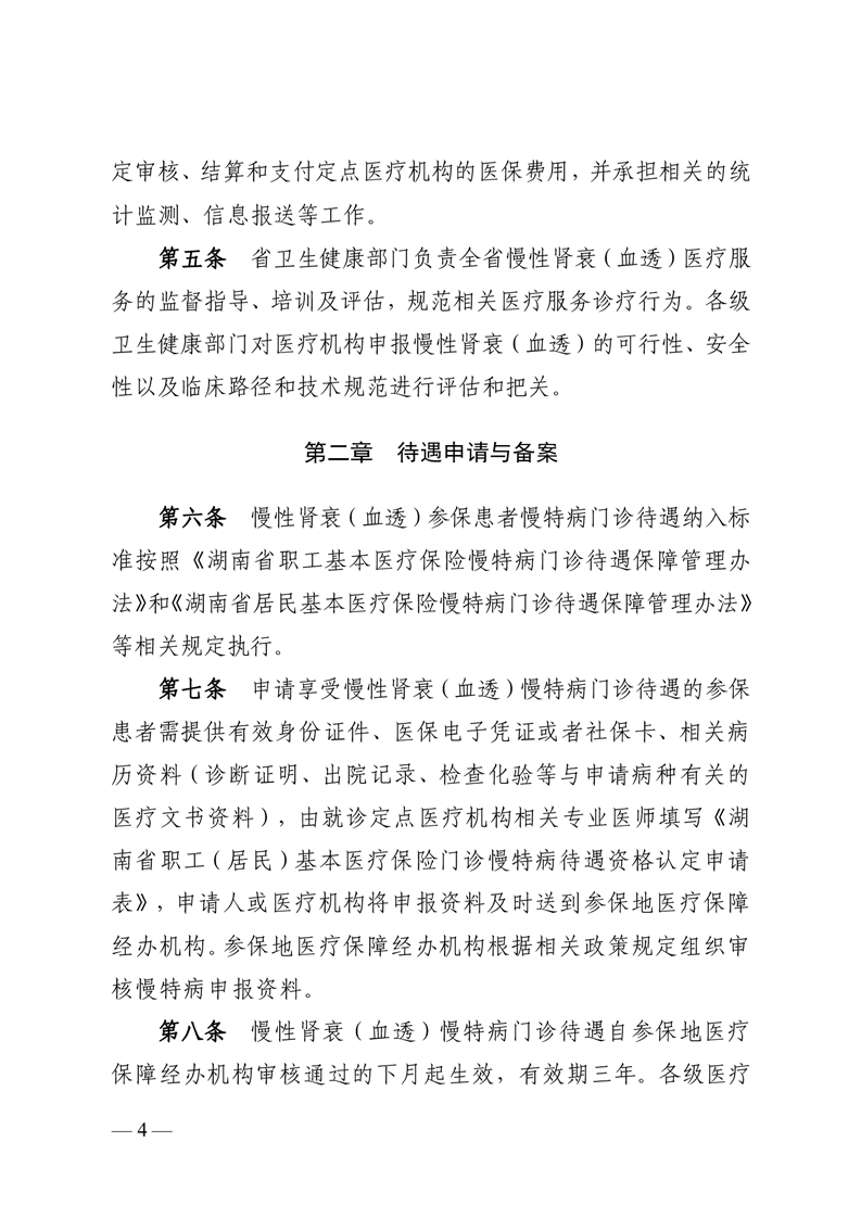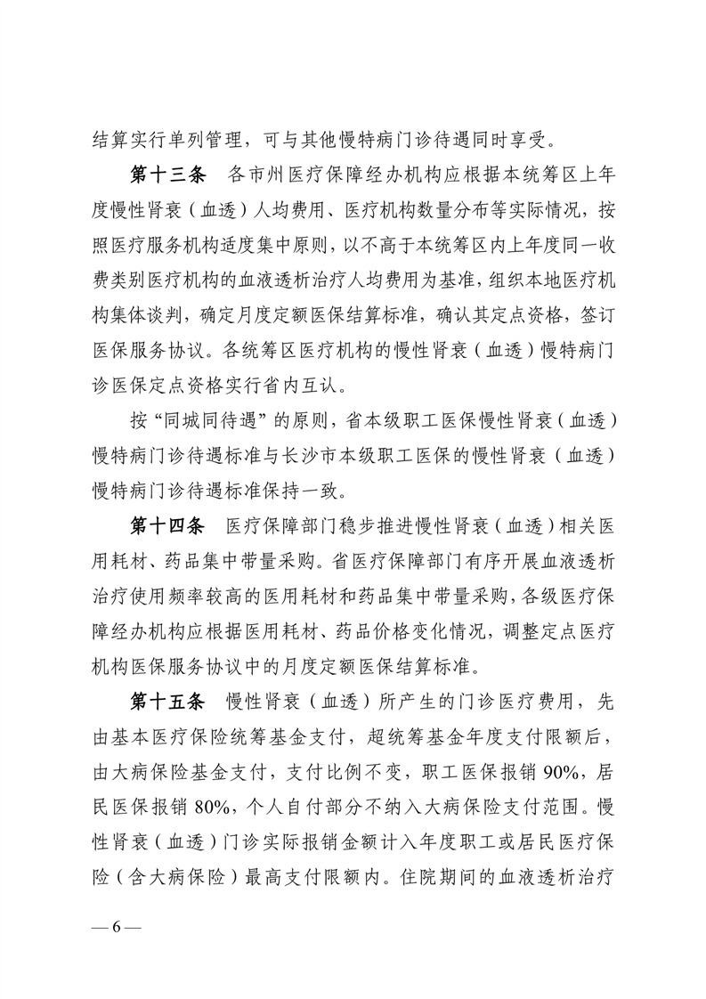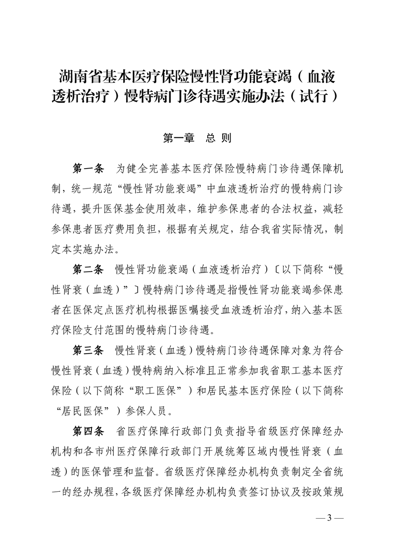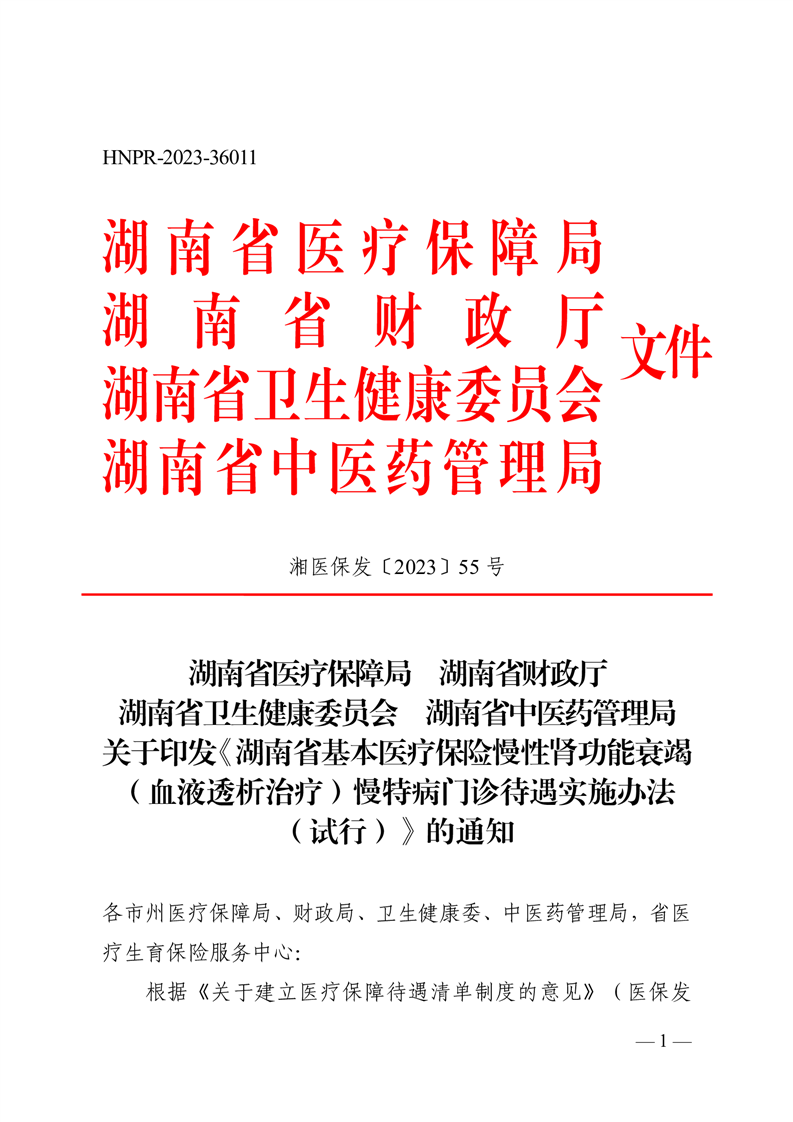 关于印发《湖南省基本医疗保险慢性肾功能衰竭(血液透析治疗)慢特病门诊待遇实施办法 (试行)》的通知