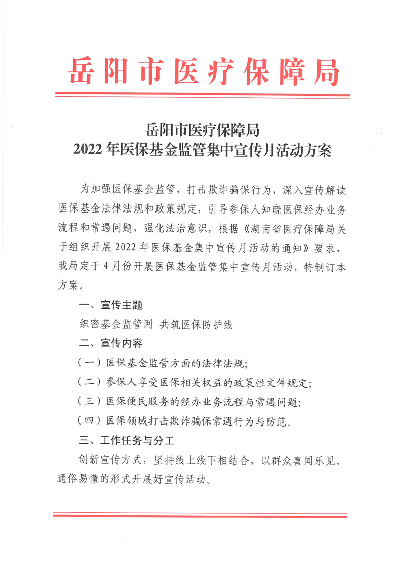 2022年医保基金监管集中宣传月活动方案
