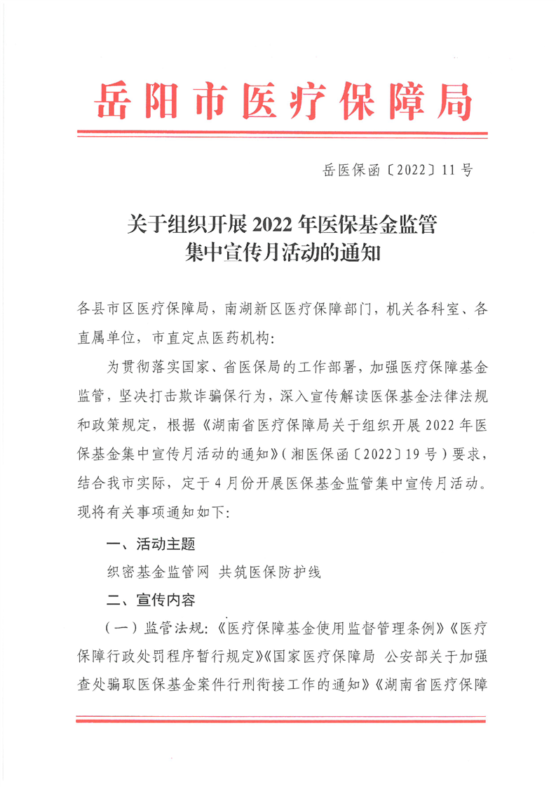 关于组织开展2022年医保基金监管集中宣传月活动的通知