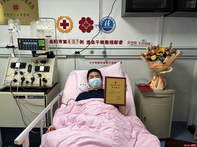 岳阳日报全媒体讯(记者 李弈萱) 献血献髓,束光点亮千盏灯;济困助难,微躯撑起百般景;播仁洒爱,小善集成一座峰。岳阳市医疗保障事务中心干部李先生尽自己的力量,用切实行动永葆初心,用点滴关爱温暖人心。近日,他在市中心医院造血干细胞采集室完成捐献,成为我市第487例造血干细胞捐献者。
