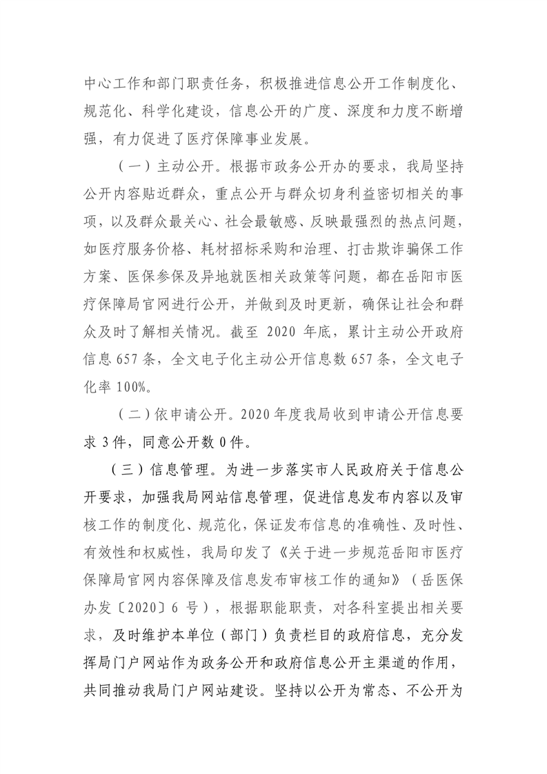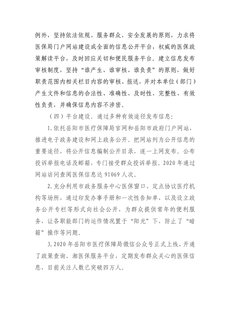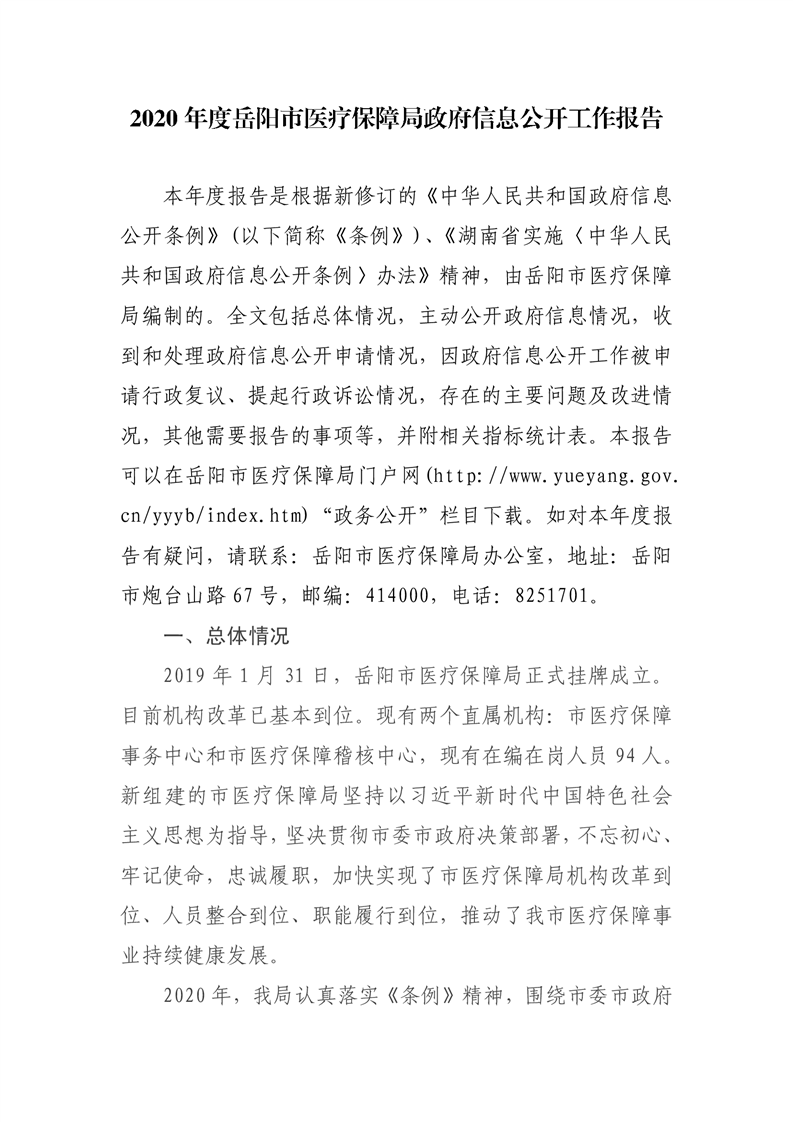 2020年度岳阳市医疗保障局政府信息公开工作年度报告