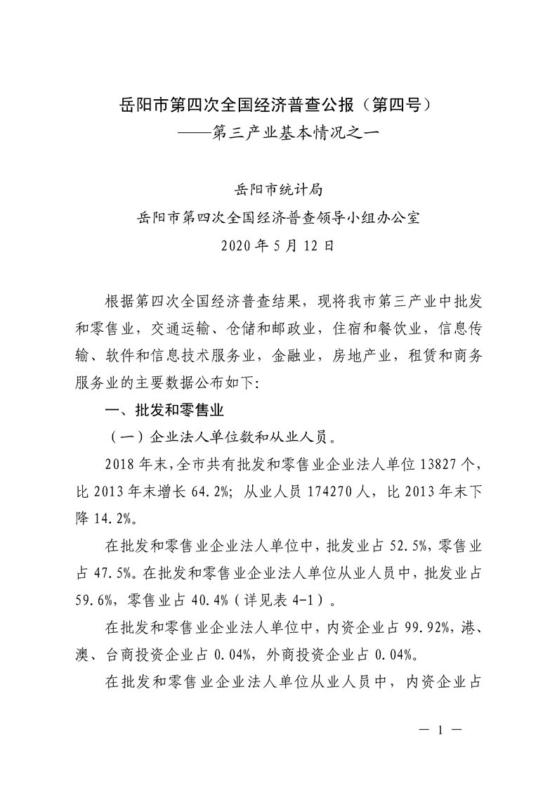 岳阳市第四次全国经济普查公报(第四号)