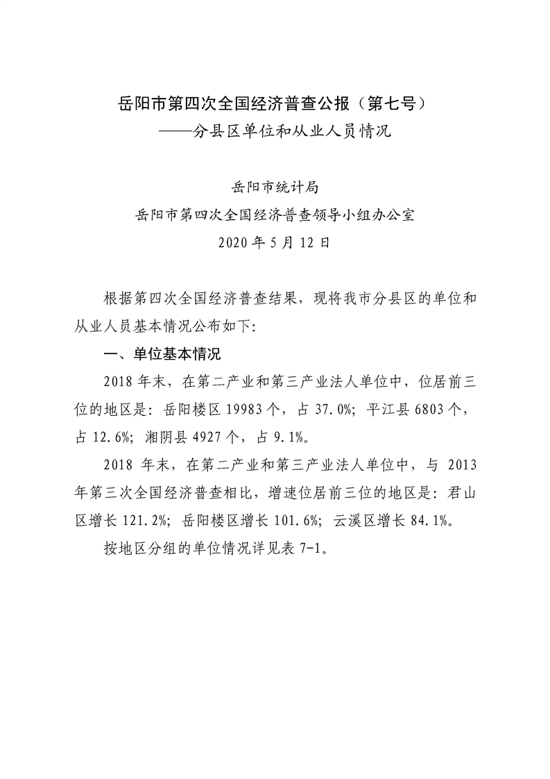 岳阳市第四次全国经济普查公报(第七号)