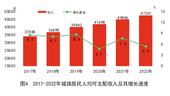 全年全省居民人均可支配收入34036元,比上年增长6.4%;全省居民人均可支配收入中位数27400元,增长6.1%。按常住地分,城镇居民人均可支配收入47301元,增长5.4%;城镇居民人均可支配收入中位数42432元,增长5.6%。农村居民人均可支配收入19546元,增长6.8%;农村居民人均可支配收入中位数17583元,增长6.6%。城乡居民收入比由上年的2.45缩小为2.42。分区域看,长株潭地区全体居民人均可支配收入51802元,增长5.9%;湘南地区全体居民人均可支配收入31500元,增长6.6%;大湘西地区全体居民人均可支配收入23611元,增长6.4%;洞庭湖地区全体居民人均可支配收入31070元,增长6.5%。脱贫县[16]农村居民人均可支配收入14714元,增长8.7%。