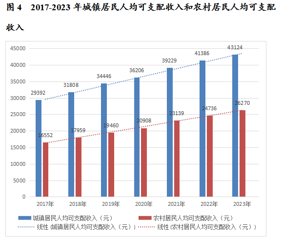 全市城镇居民人均可支配收入43124元,增长4.2%;农村居民人均可支配收入26270元,增长6.2%。
