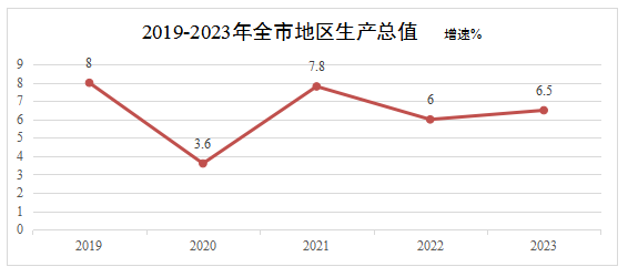 分季度看,一季度地区生产总值增长6%;上半年增长4.7%;前三季度增长5%;全年增长6.5%。