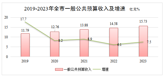 全年一般公共预算收入15.73亿元,增长7.5%;一般公共预算地方收入10.34亿元,增长8%;一般公共预算地方税收收入7.62亿元,增长10.8%。