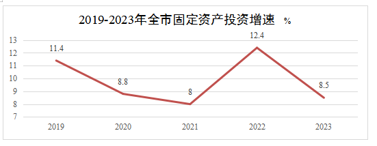 全年固定资产投资比上年增长8.5%,分投资方向看,工业投资增长5.37%,民生投资增长5.45%,生态投资增长179.36%,基础设施投资下降11.62%,高新技术产业投资下降36.61%。