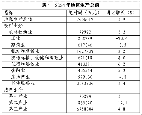 一、二、三次产业分别拉动GDP增长0、-2.3、6.2个百分点,三次产业结构为1:10.9:88.1。与上年比较,第一产业所占比重上升0.1个百分点,第二产业比重下降5.2个百分点,第三产业比重上升5.2个百分点。