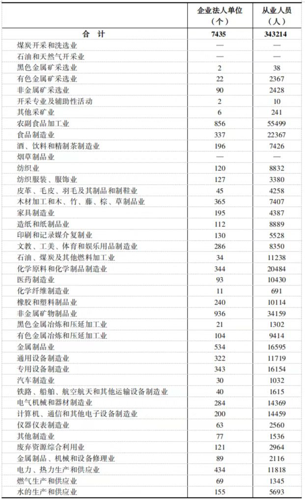 2023年末,全市共有工业企业法人单位[1]7435个,比2018年末增长13.1%;从业人员343214人,比2018年末下降2.8%。