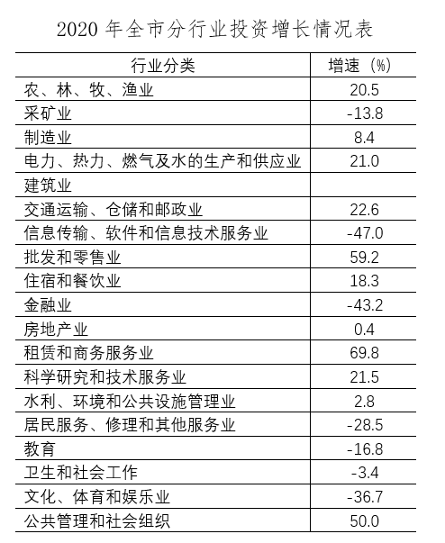 2020年,在市委、市政府的坚强领导下,全市坚持稳中求进工作总基调,多措并举保障投资项目签约引进和开工建设,全年固定资产投资增长8.8%,高于全省平均水平1.2个百分点,排第6位。